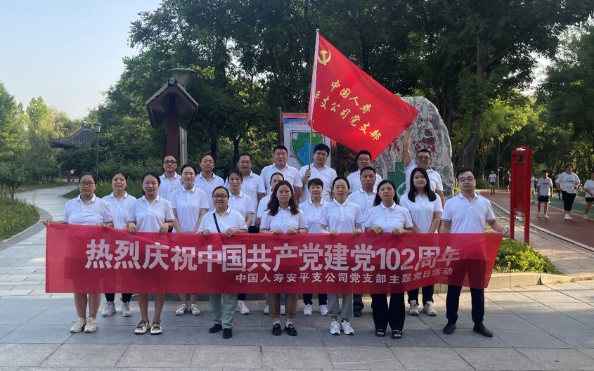 7月7日下午,中國人壽安平支公司黨支部組織全司22名員工通過“健步走”的活動方式,在安平縣漢王公園舉行“學思想 強本領 樹新風 促發展”主題黨日活動活動。