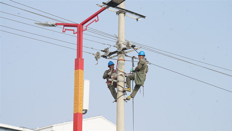 日前,在田只平村配電網(wǎng)改造現(xiàn)場,電力工人頭頂烈日,在做好安全措施后,踩著無拉線桿攀爬至高空進(jìn)行瓷瓶綁扎、轉(zhuǎn)角并線等施工作業(yè),動作嫻熟、干勁十足。項目完成后將有效降低村級電網(wǎng)線損率、故障率,提升供電質(zhì)量水平,為村民生產(chǎn)生活提供可靠電力保障。針對配電網(wǎng)工程改造任務(wù)重、時間緊、點多面廣的工作實際,國網(wǎng)武邑縣供電公司超前謀劃、周密部署,組織專班、統(tǒng)籌推進(jìn),全面推進(jìn)農(nóng)村電網(wǎng)改造升級。