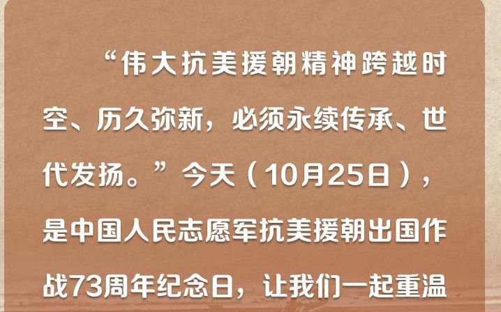 習主席深刻指出:“抗美援朝戰爭偉大勝利,是中國人民站起來后屹立于世界東方的宣言書,是中華民族走向偉大復興的重要里程碑,對中國和世界都有著重大而深遠的意義。”