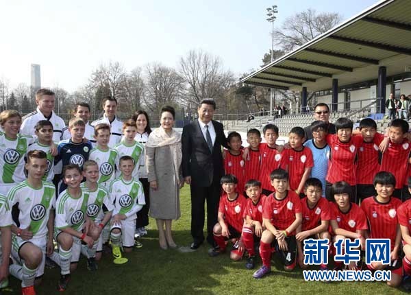 2014年3月,習近平看望了在德國訓練的中國少年足球運動員。習近平對小球員們說,我希望你們通過這次來德國培訓,在中國青少年足球方面發揮帶動作用。也希望更多的青少年投身中國足球事業。我看好你們,看好你們這一代。我希望將來你們能夠成為出色的足球運動員。