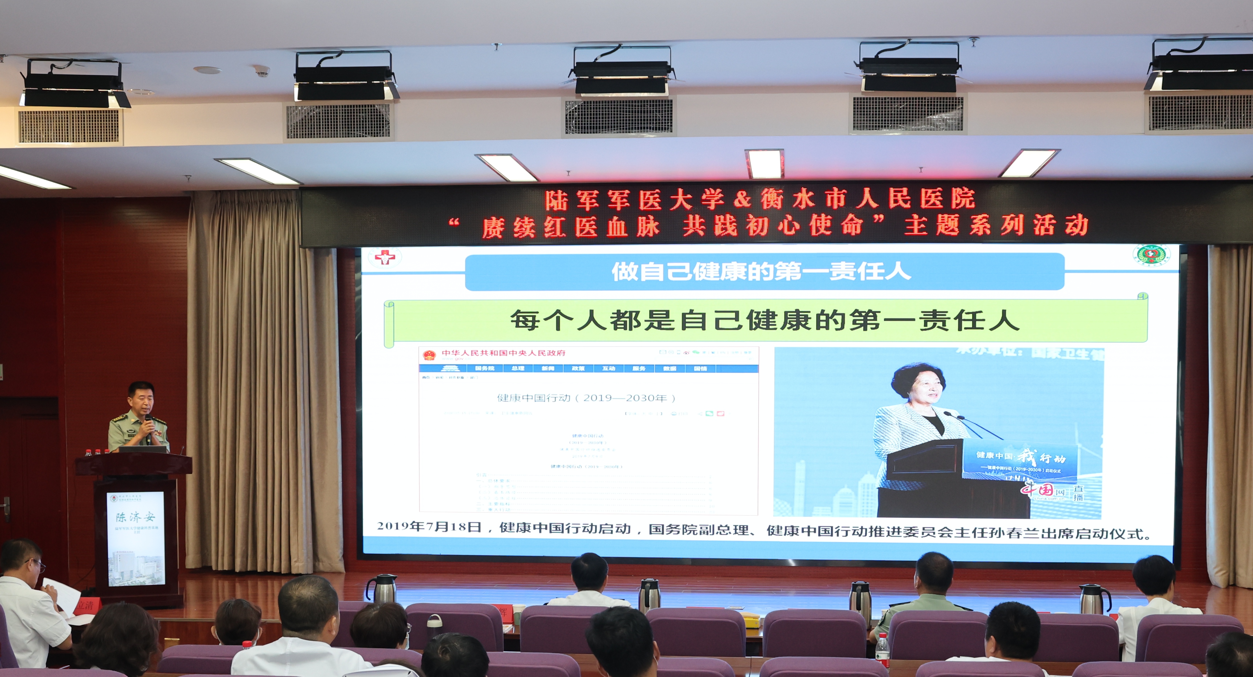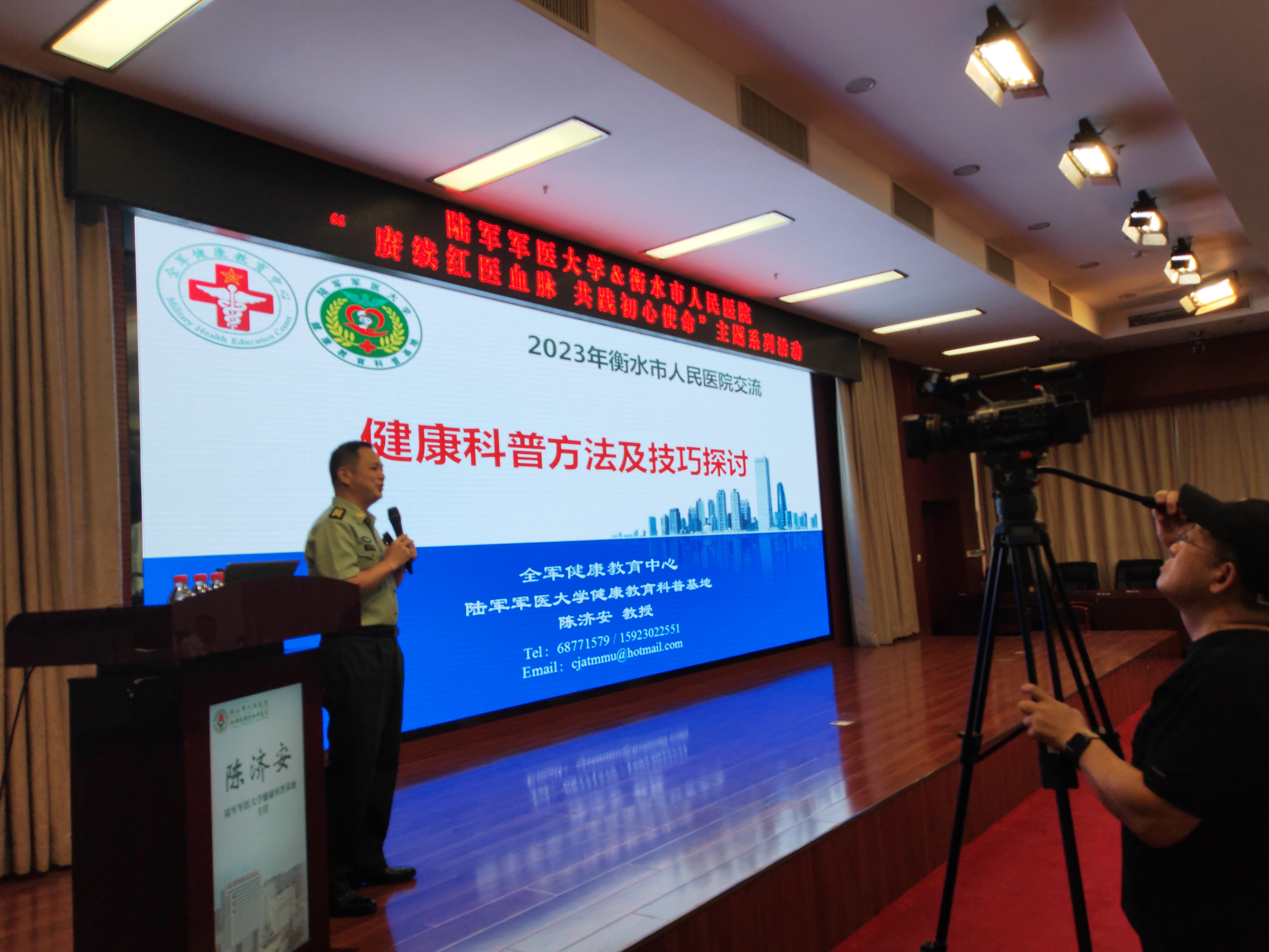 陸軍軍醫(yī)大學軍事預防醫(yī)學系軍隊健康教育教研室主任、全軍健康教育中心辦公室常務副主任、陸軍軍醫(yī)大學健康教育科普基地主任陳濟安大校作講座。