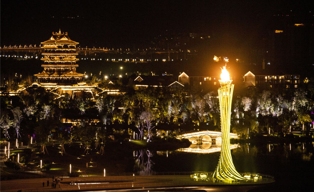 主火炬塔的火焰熊熊燃燒,照亮了全人類追求和平與發展的共同愿望,照亮了構建人類命運共同體的共同夢想!