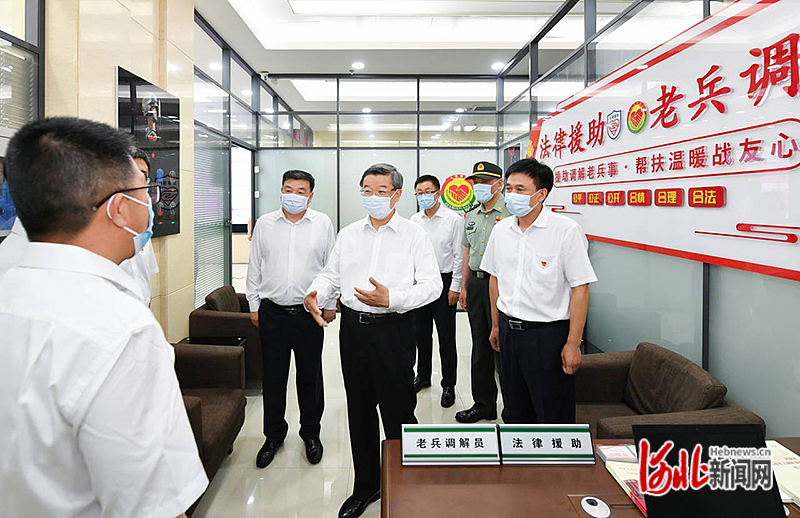 7月28日,省委書記、省軍區黨委第一書記倪岳峰在石家莊市退役軍人服務中心走訪調研。 河北日報記者趙海江攝