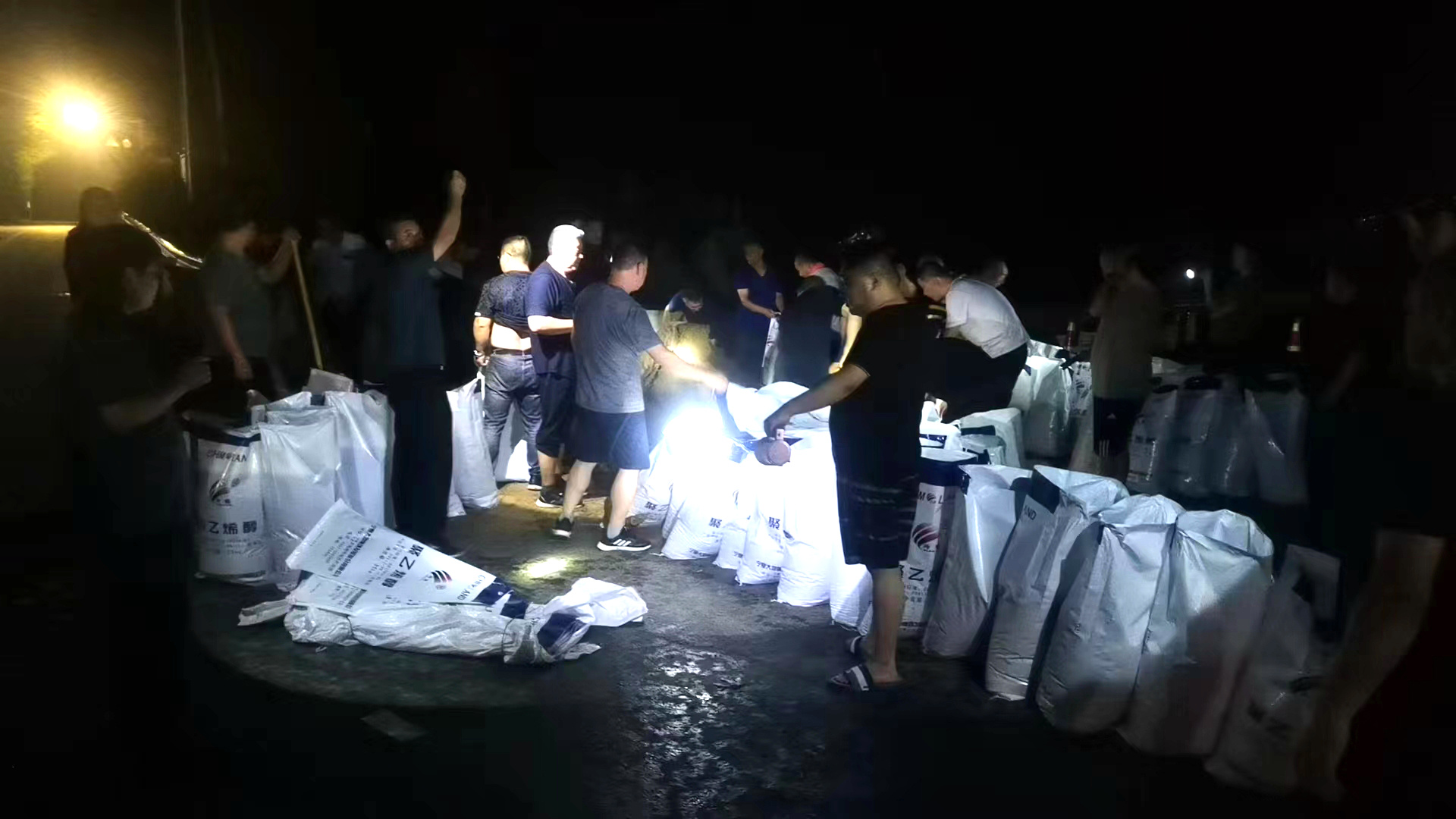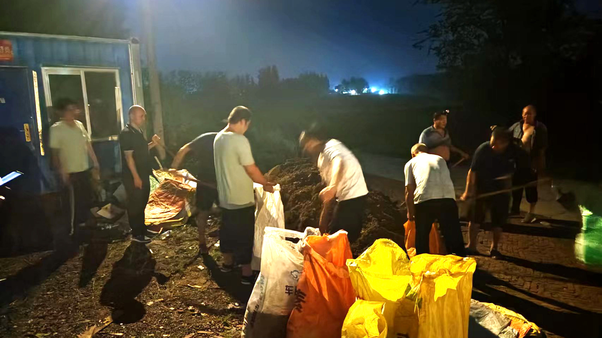 安平縣程油子鄉(xiāng)黨員群眾連夜備足沙袋。安平縣融媒體中心供圖