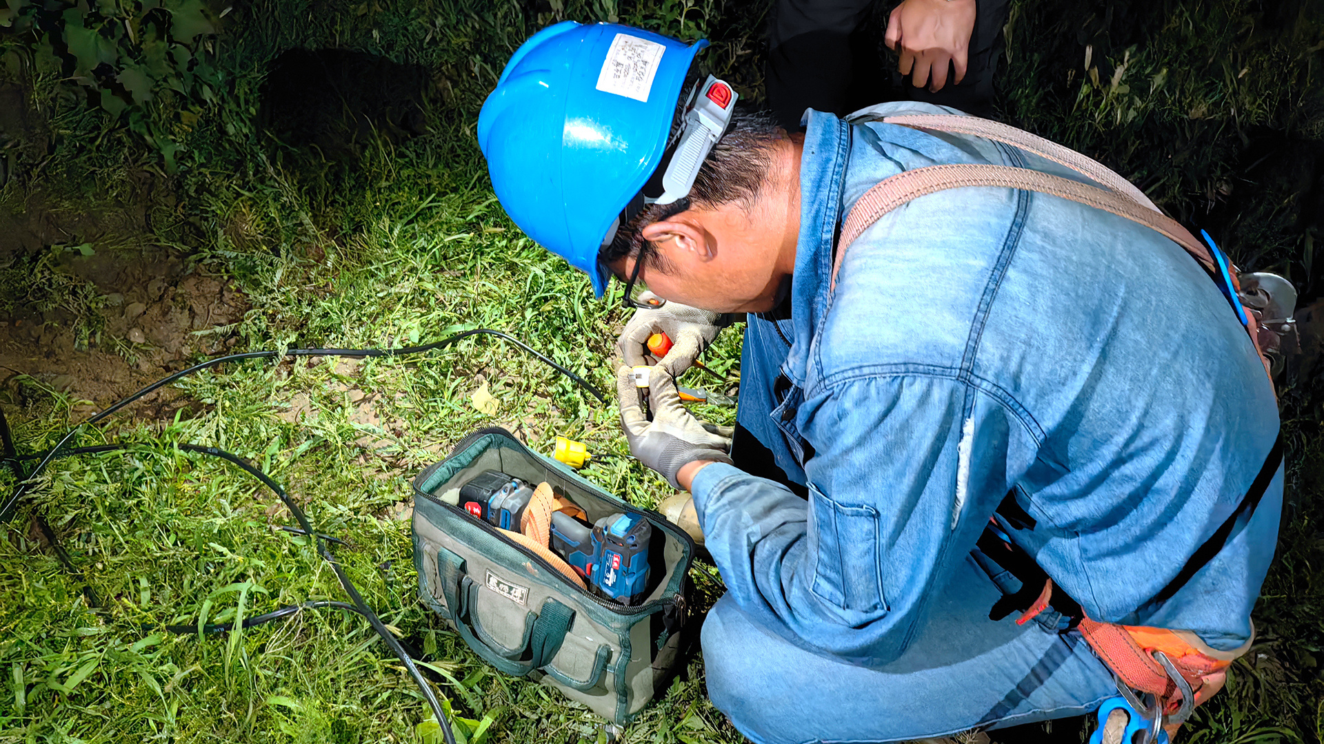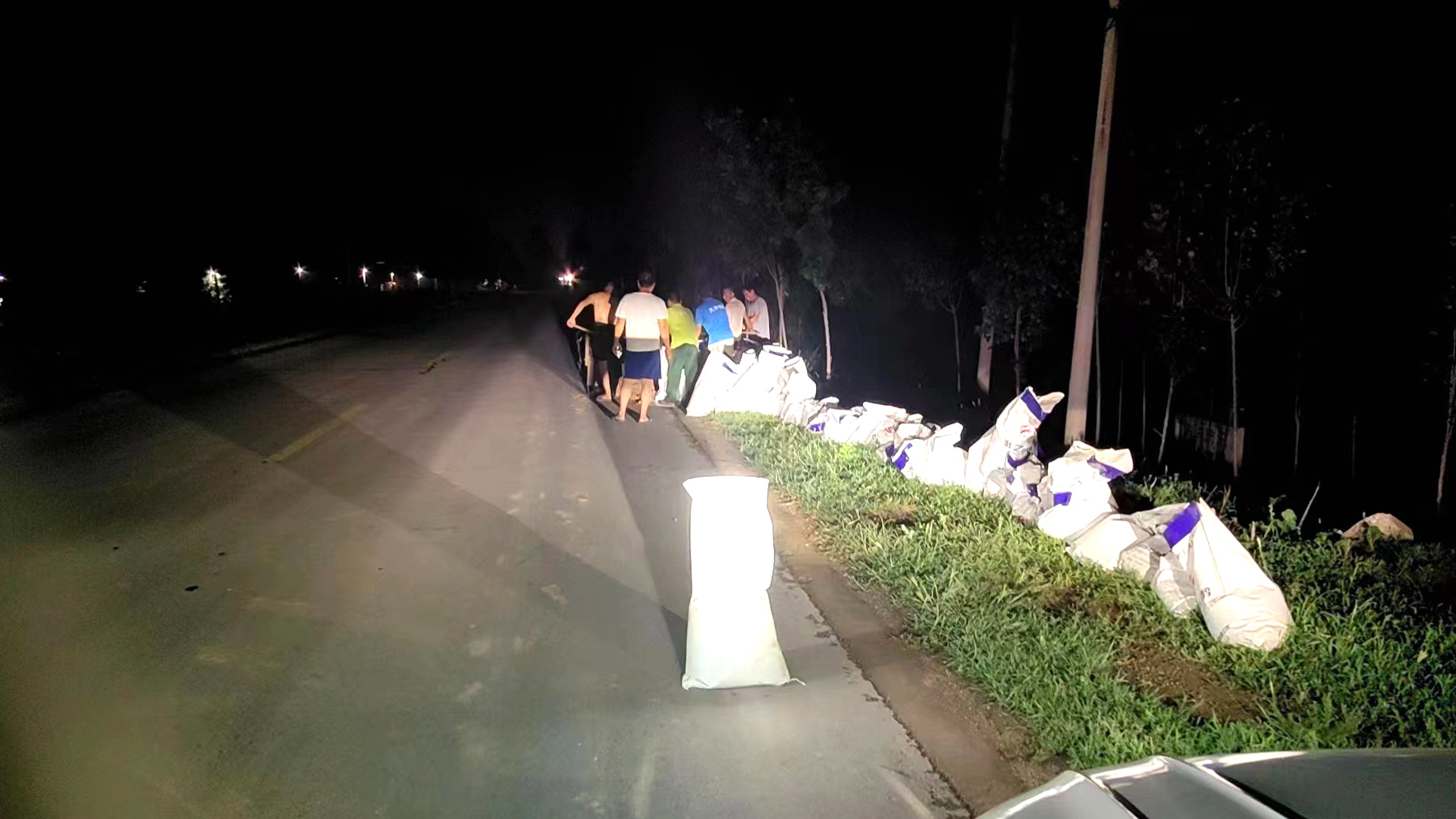 安平縣供電公司連夜對南北大堤安裝應急照明燈。安平縣融媒體中心供圖