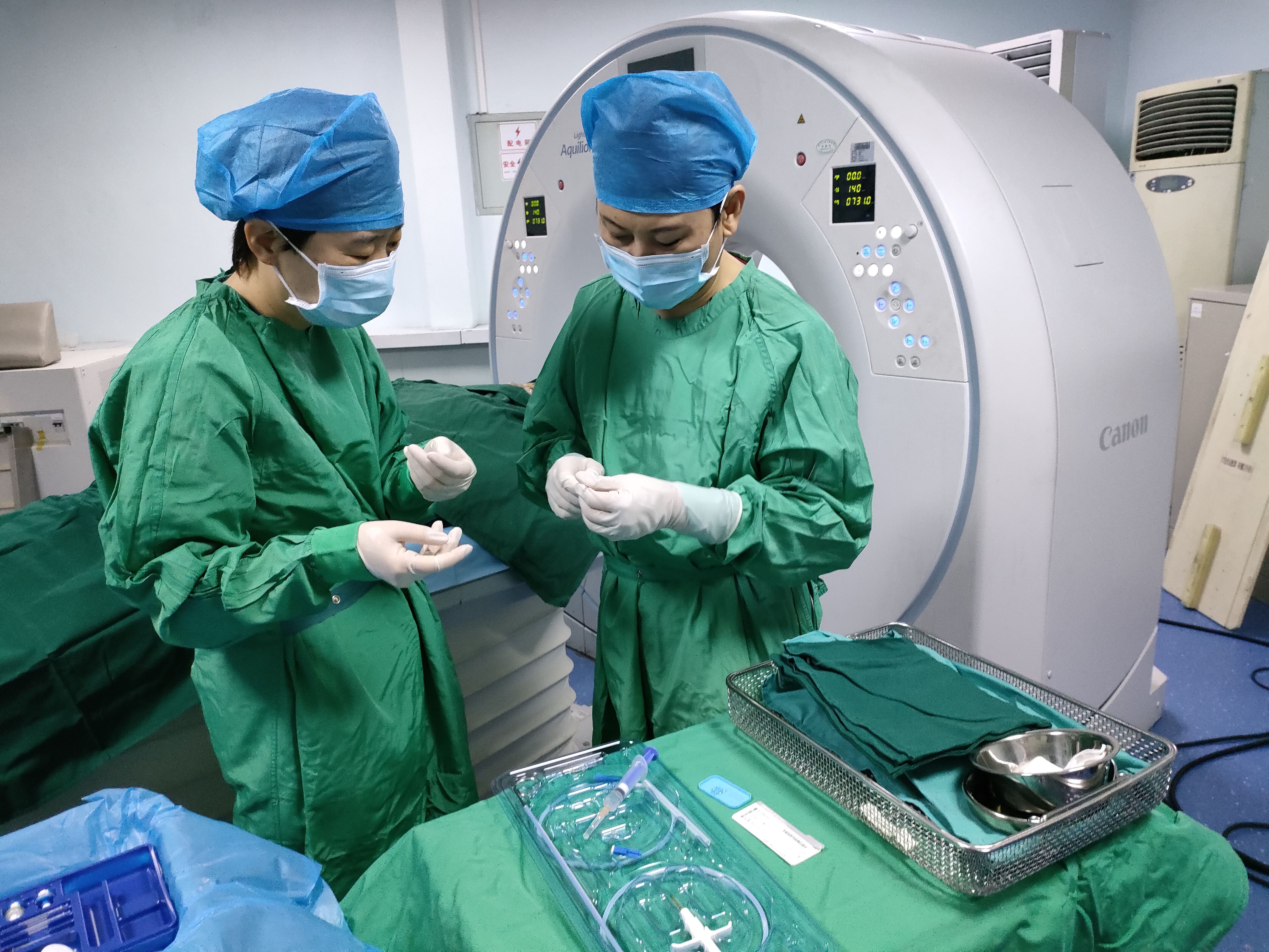 哈院疼痛科主任李琳(右)與助手司娜副主任醫(yī)師細(xì)致進(jìn)行手術(shù)準(zhǔn)備。