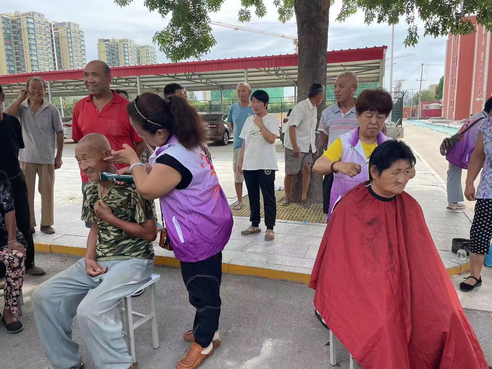 現(xiàn)場,除了捐贈物資,宋瑞平等志愿者們還為安置點的群眾提供了免費理發(fā)服務,實實在在溫暖了群眾們的心。(圖片由宋瑞平提供)