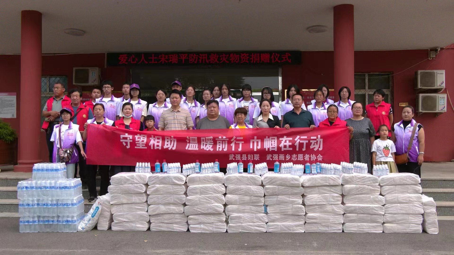 自武強縣出現(xiàn)汛情后,蓄滯洪區(qū)內的村民被有序轉移并安置。8月7日,“中國好人”宋瑞平聯(lián)合武強縣婦聯(lián)和部分志愿者帶著防汛救災物資來到武強中學安置點進行慰問,傳遞溫暖的正能量。