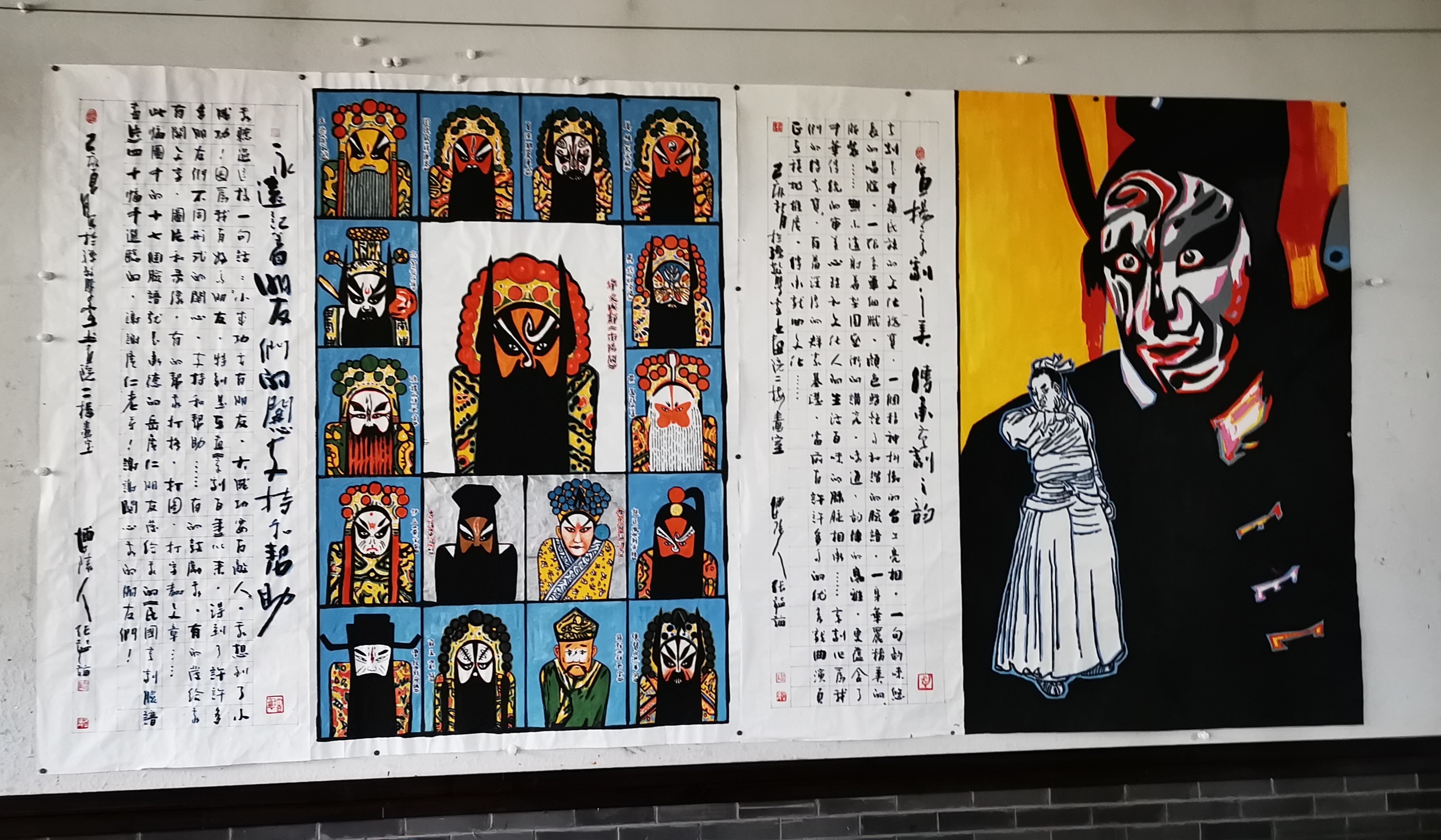 在位于衡水湖畔的孫敬學堂書畫院,記者有幸見到這幅作品?!毒﹦“倌辍酚砂倜子彤嫼桶倜姿⒘薪M成。按照京劇發展的時間、流派、重大事件等要素依次推進,百米油畫上展現了269位京劇表演藝術家的風采。作品不拘泥于傳統油畫的表現形式,有的人物以古典油畫手法入畫,有的人物以素描效果入畫,有的形象則以剪影入畫,還加入了中國書法和傳統木版年畫等豐富元素,“張韞韜式”的藝術遐想和浪漫情懷淋漓盡致地揮灑在這百米巨作中。百米水墨長卷則以京劇臉譜和書法為主。