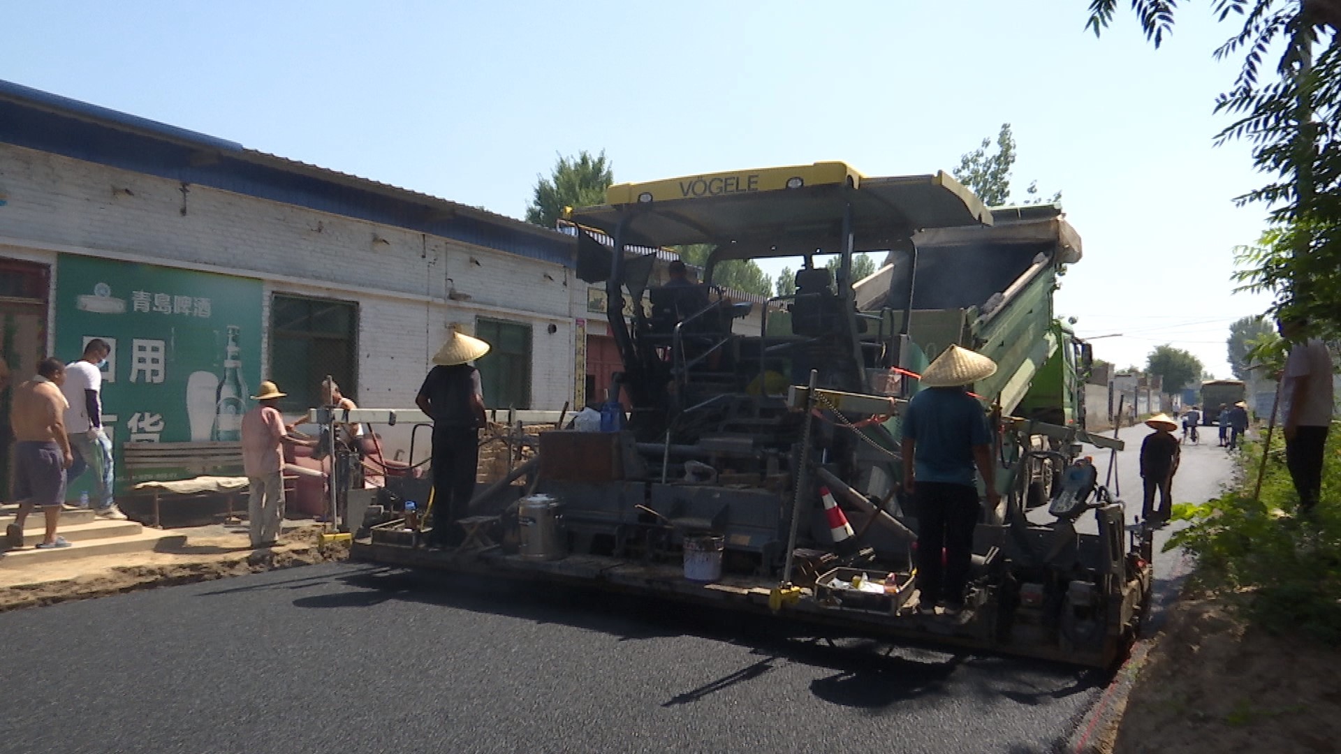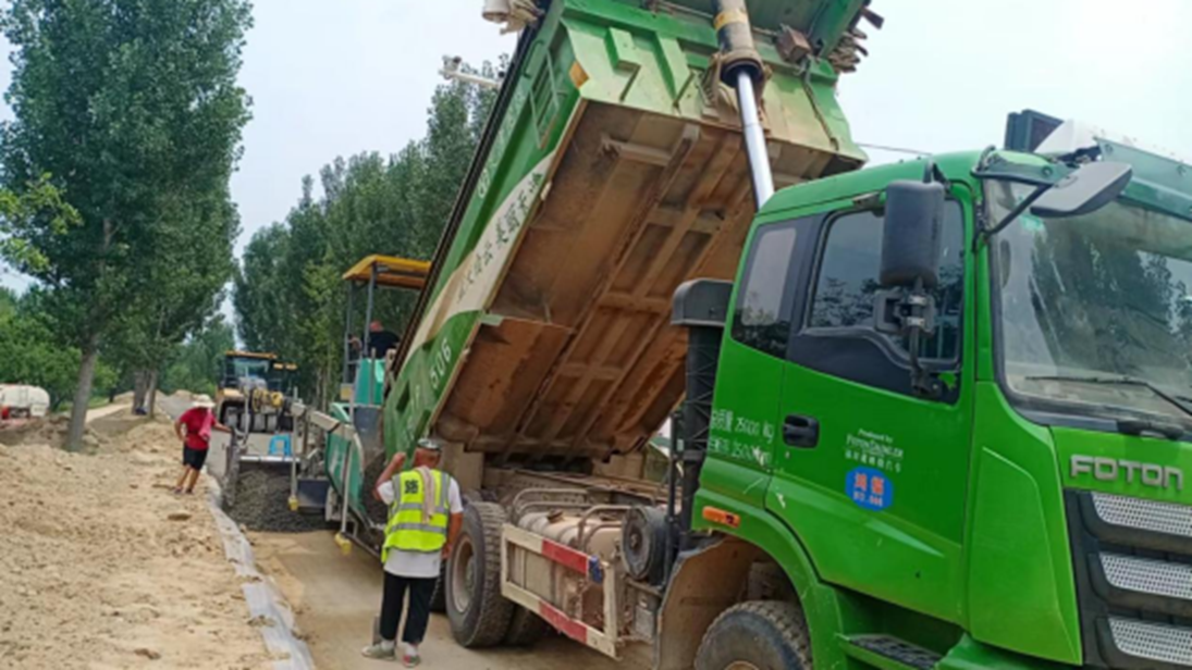 攤鋪機進行油面攤鋪作業(yè)。安平縣融媒體中心供圖