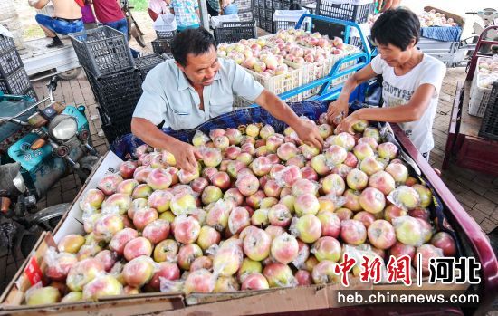 圖為村民將收獲的蘋果裝車。李金剛 攝