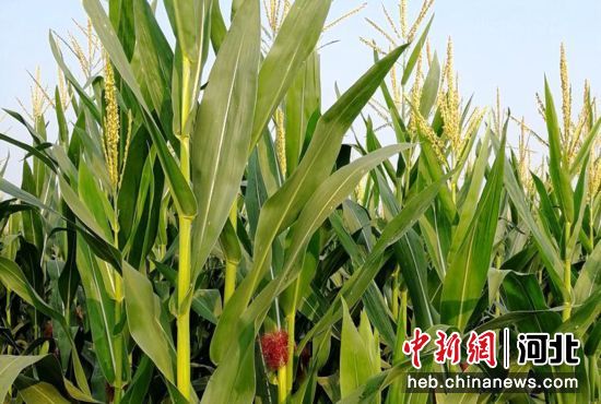 近日,在河北省棗強縣唐林鎮邵府村,村集體種植的200畝玉米長勢喜人,縣農業農村局包村農技專家正在田間指導。