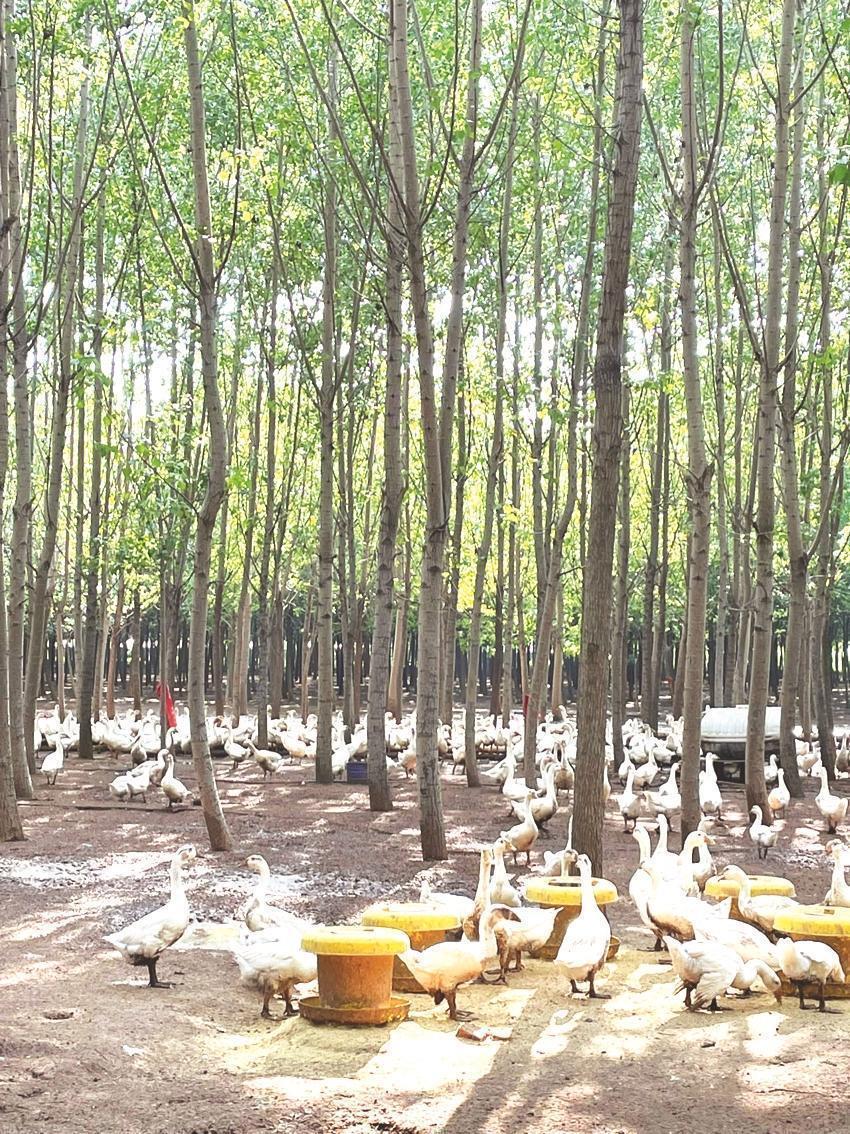 樹為鵝遮陰,鵝為樹除草,鵝的糞便被林地吸收又轉化為養分,形成了生態種養良性循環。林下經濟方興未艾更為當地村民提供了很多就業的機會。