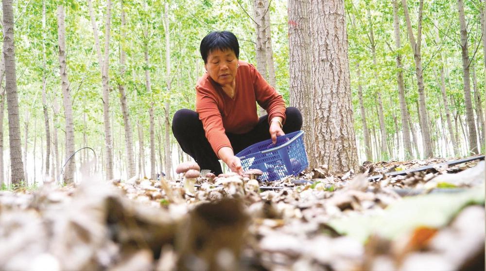 5月20日,平固店鎮林下種植的赤松茸喜獲豐收,圖為南吳村村民王金愛正在采摘赤松茸。 李清波 攝