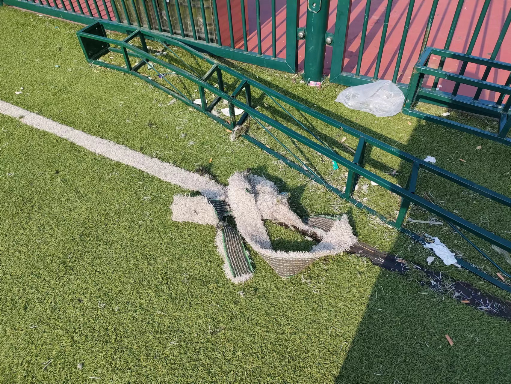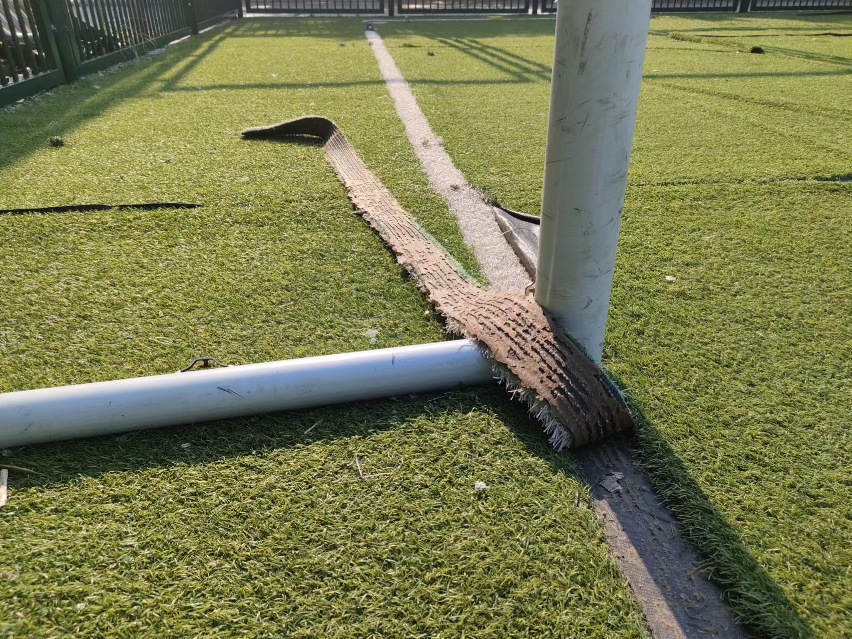 “這個足球場破損已經(jīng)有一段時間了,原本場地內(nèi)的草皮是連在一起的,損壞以后經(jīng)常看到有孩子在這里踢球被絆倒。”市民王先生告訴記者,他經(jīng)常帶孩子來這里踢球,草皮破損存在安全隱患,希望相關(guān)部門能夠進(jìn)行維修。