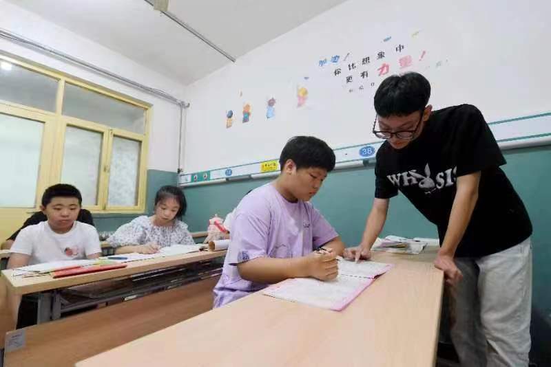 托管老師輔導(dǎo)孩子功課。崔佳棟 攝