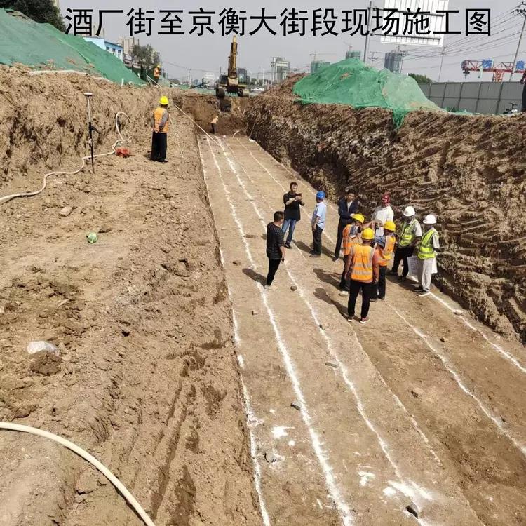 目前,項目提升工程已進入現(xiàn)場施工階段,交通導改已完成。障礙物清表及管線遷改方面,電力、熱力等已全部完成,燃氣遷改完成50%,自來水臨時管道鋪設已經完成。雨污水方面,除紅旗大街口、巨吳渠兩側頂管外,其余管溝開挖、下管、回填等等均已完成,整體的雨污水工程總體完成是95%。道路工程方面,拓寬道路及非機動車道路床處理2000米,二步灰土處理完成1600米,完成400米一步水穩(wěn)施工。橋梁整體工程方面,已經完成工程量的50%。