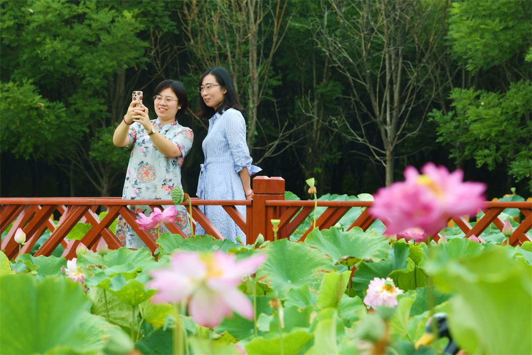 幾年前,張口村的這處荷花池還是一個廢棄的坑塘,垃圾多,氣味兒重,村民們都很鬧心。經(jīng)過整治,坑里的垃圾被清運,四周進行了加固和綠化,并利用坑塘地勢低洼可蓄水優(yōu)勢,在坑底種上了荷花,還設置了小噴泉、放養(yǎng)了魚苗。曾經(jīng)的“鬧心塘”變成了村民的打卡地。