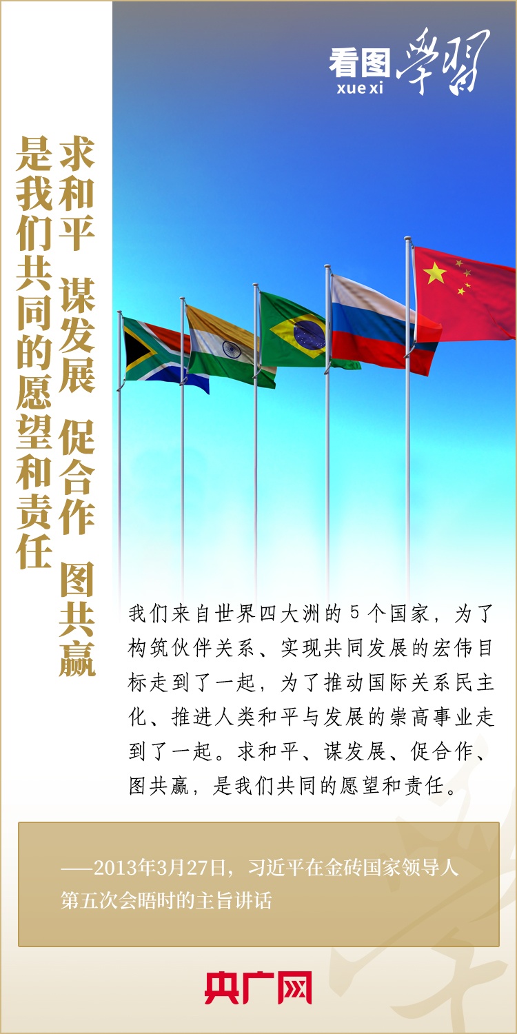 應南非共和國總統拉馬福薩邀請,國家主席習近平將于8月21日至24日出席在南非約翰內斯堡舉行的金磚國家領導人第十五次會晤并對南非進行國事訪問,并將同拉馬福薩共同主持中非領導人對話會。2013年以來,習近平主席多次出席或主持金磚國家領導人會晤,并發表一系列重要講話,強調金磚國家是守望相助的大家庭、合作共贏的好伙伴。一起來學習!