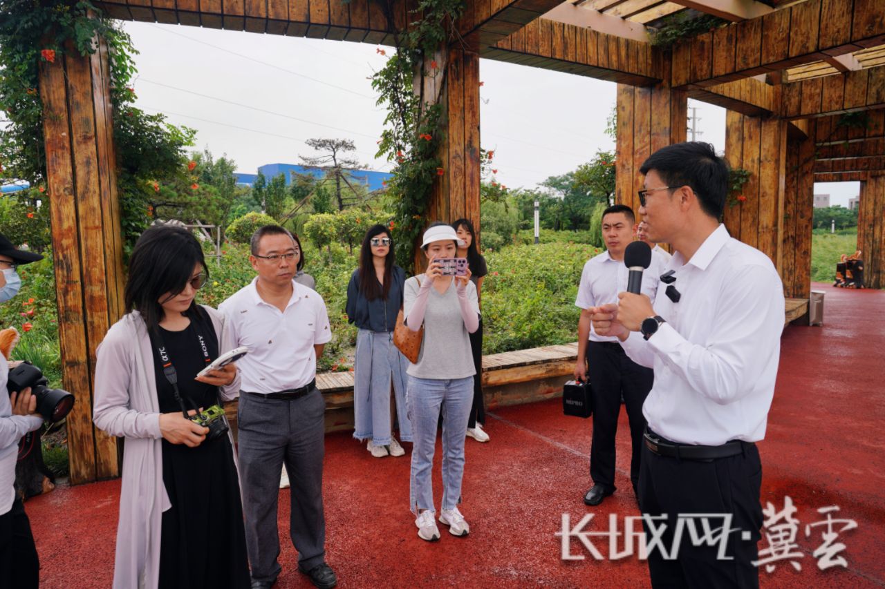 8月20日,“走進區域看發展·中國式現代化的京津冀實踐”網絡主題調研采訪活動走訪團來到河北省滄州市黃驊港煤炭港區蓮園生態水系,國能黃驊港務公司共享服務中心接待管理科科長翟廣鋒為媒體記者進行講解。長城網·冀云客戶端記者 邢鵬飛 攝