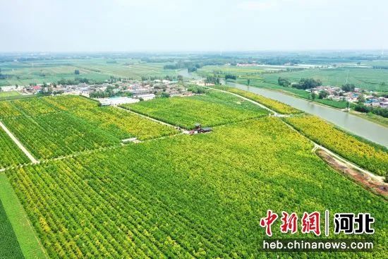 阜城縣崔家廟鎮(zhèn)張家橋村千畝桃園一角(無人機(jī)照片)。