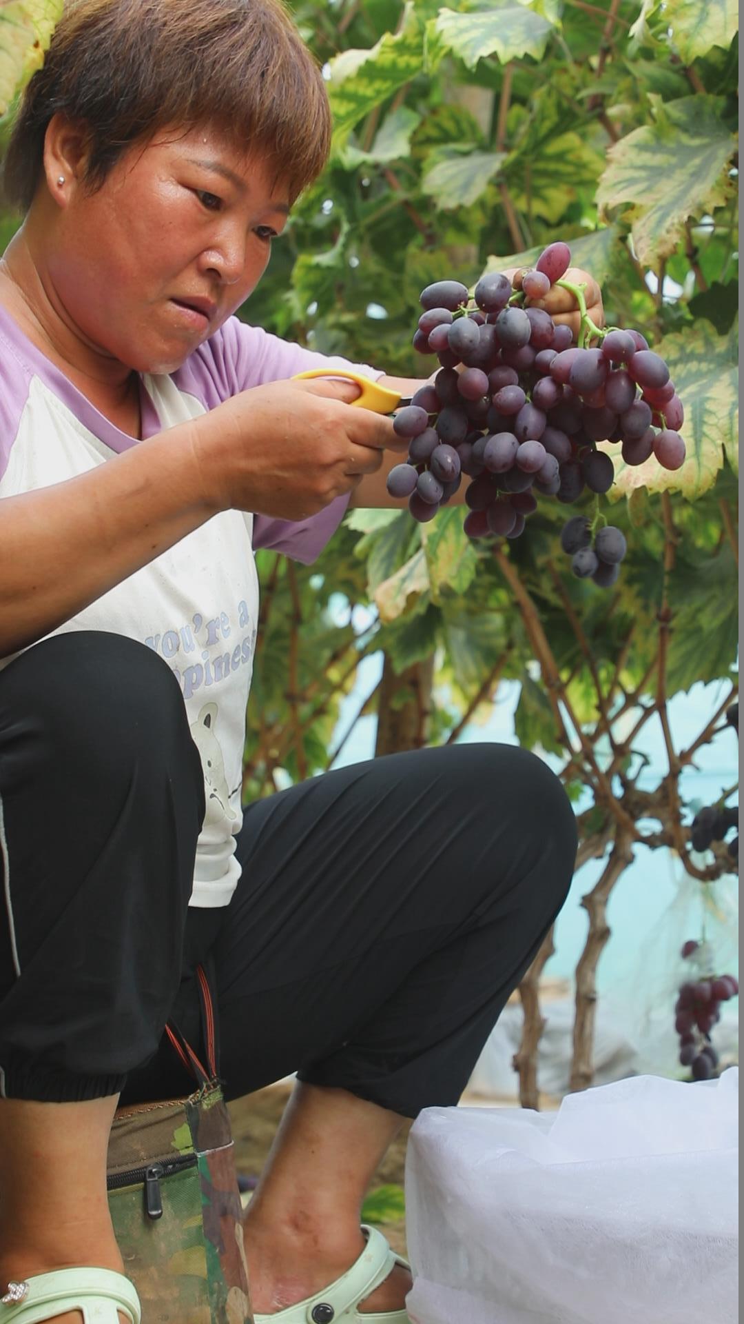 農戶對成熟的葡萄進行及時采摘。饒陽縣融媒體中心供圖