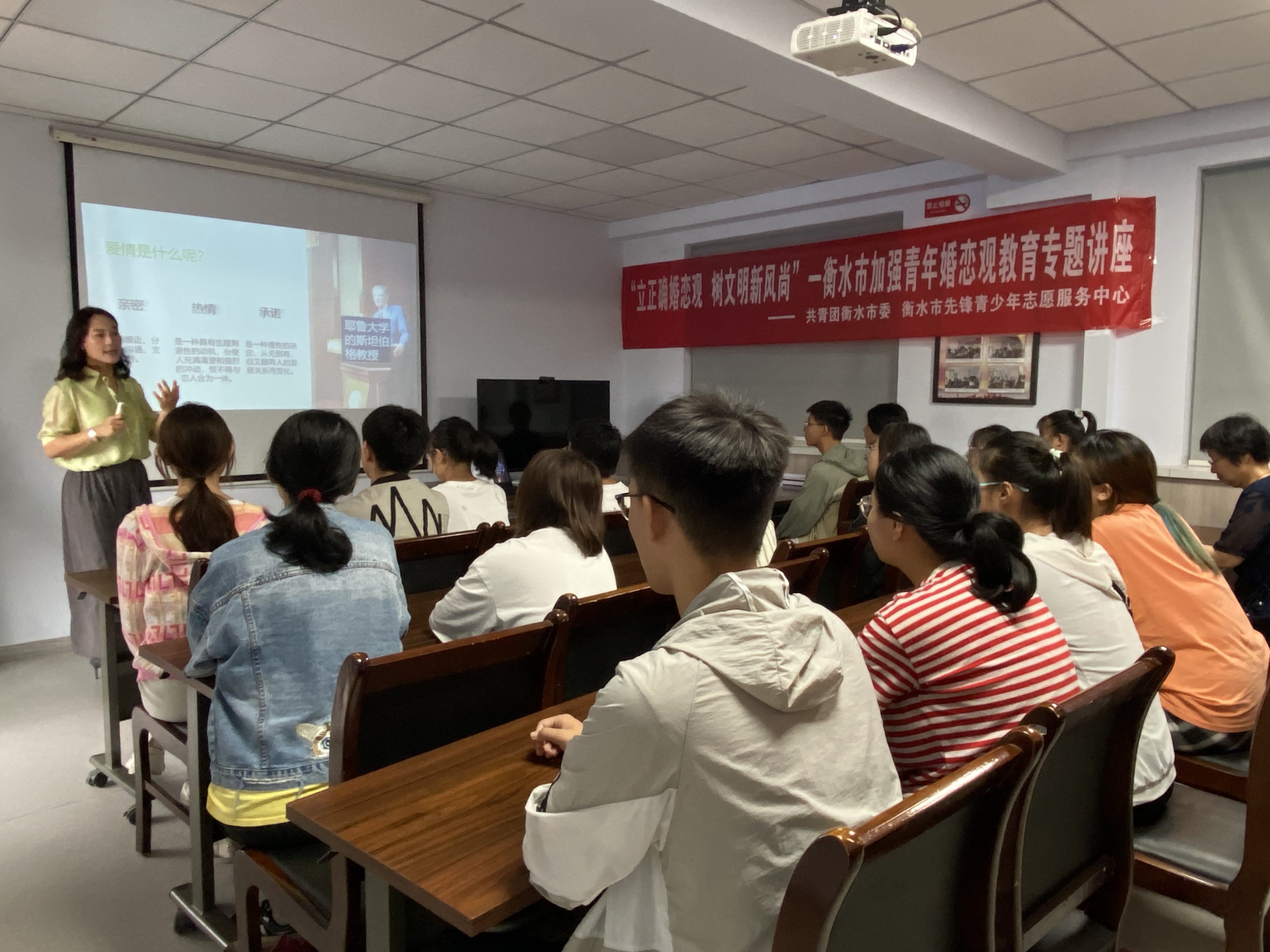 為引導廣大青年大學生樹立正確的愛情觀、婚姻觀、家庭觀,提升處理愛情、婚姻、家庭等問題的能力,8月24日,共青團衡水市委聯合衡水市先鋒青少年志愿服務中心,在市區區府社區新時代文明實踐站組織開展“立正確婚戀觀 樹文明新風尚”青年婚戀觀教育主題講座。