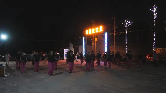 休閑廣場上有彩燈、LED顯示屏和先進的音響設備等?,F如今,幾乎每天晚上,村民們都扭著歡快的廣場舞,享受著幸福社區建設帶來的快樂,就像廣場上標語寫的那樣"幸福在這里一一村莊中的城市"。