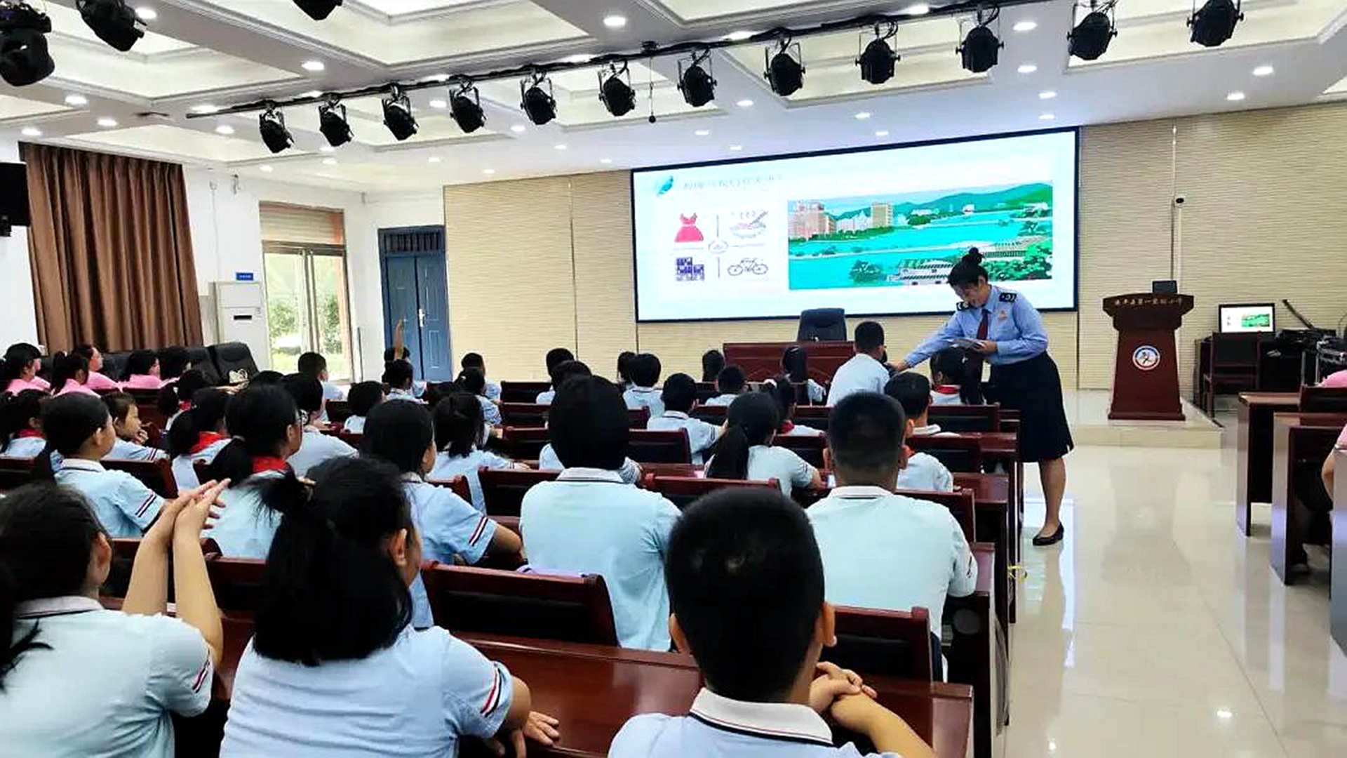 稅務宣講員與同學們互動。安平縣第一實驗小學供圖