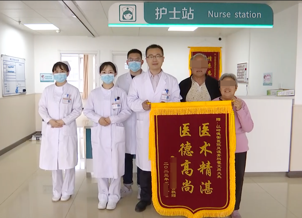 經過一段時間的綜合治療,老太太腰也直了,腿不疼了,走路快了,病情得到極大的緩解。從寸步難行到行走如常,再加上醫護人員在其住院期間生活上無微不至的關懷和照顧,這些都讓老兩口感到非常滿意。于是,在出院前,羅老太太和老伴決定給該院風濕骨病科全體醫護人員送上一面錦旗來表達自己的感激之情。