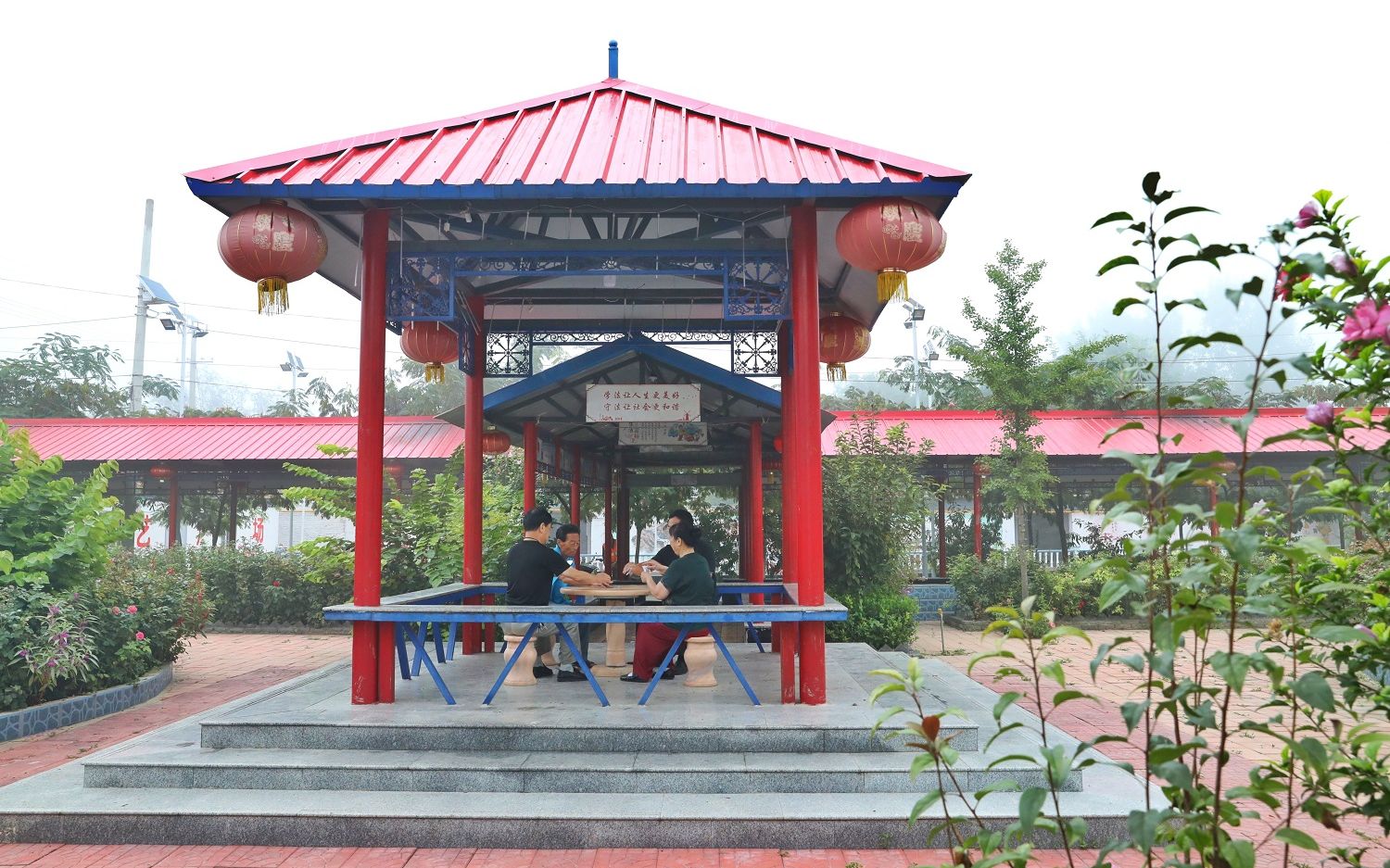 村子里老人、兒童居多,為了給他們提供一個休閑娛樂的場所,后塘坡村建成了休閑廣場、文化廣場、運動廣場和兒童樂園等多個場所。村民們常去的休閑廣場上建起了涼亭和長廊,吊上紅色大燈籠,掛起小彩旗,村民們可以在這里扭秧歌、跳廣場舞。夜晚的休閑廣場,彩色燈光閃爍,村民們坐在長廊下下棋、聊天,好不自在。一旁的農家書屋圖書種類繁多,滿足群眾閱讀需求,成為群眾的“精神糧倉”,很多村民通過學習走上了致富道路。張桂忠說:“村民們經常來這里看書,學習科技知識,科學種田。”