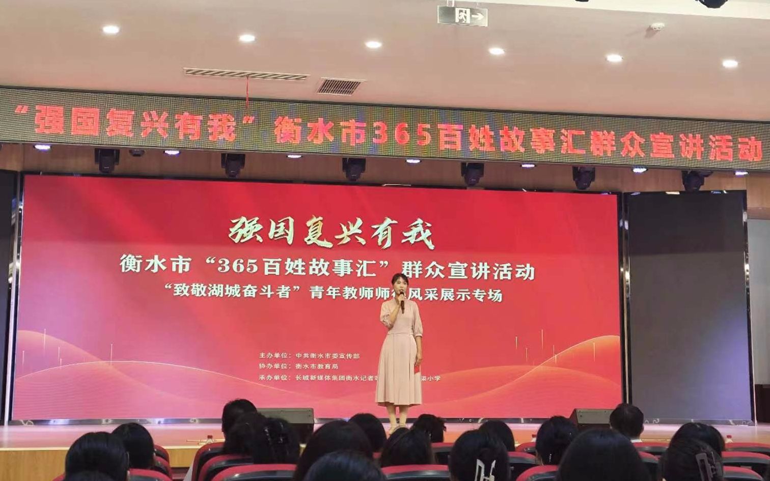 9月7日下午,“強國復興有我”365百姓故事匯群眾宣講活動“致敬湖城奮斗者”青年教師師德風采展示專場在衡水市巨吳渠小學舉行。