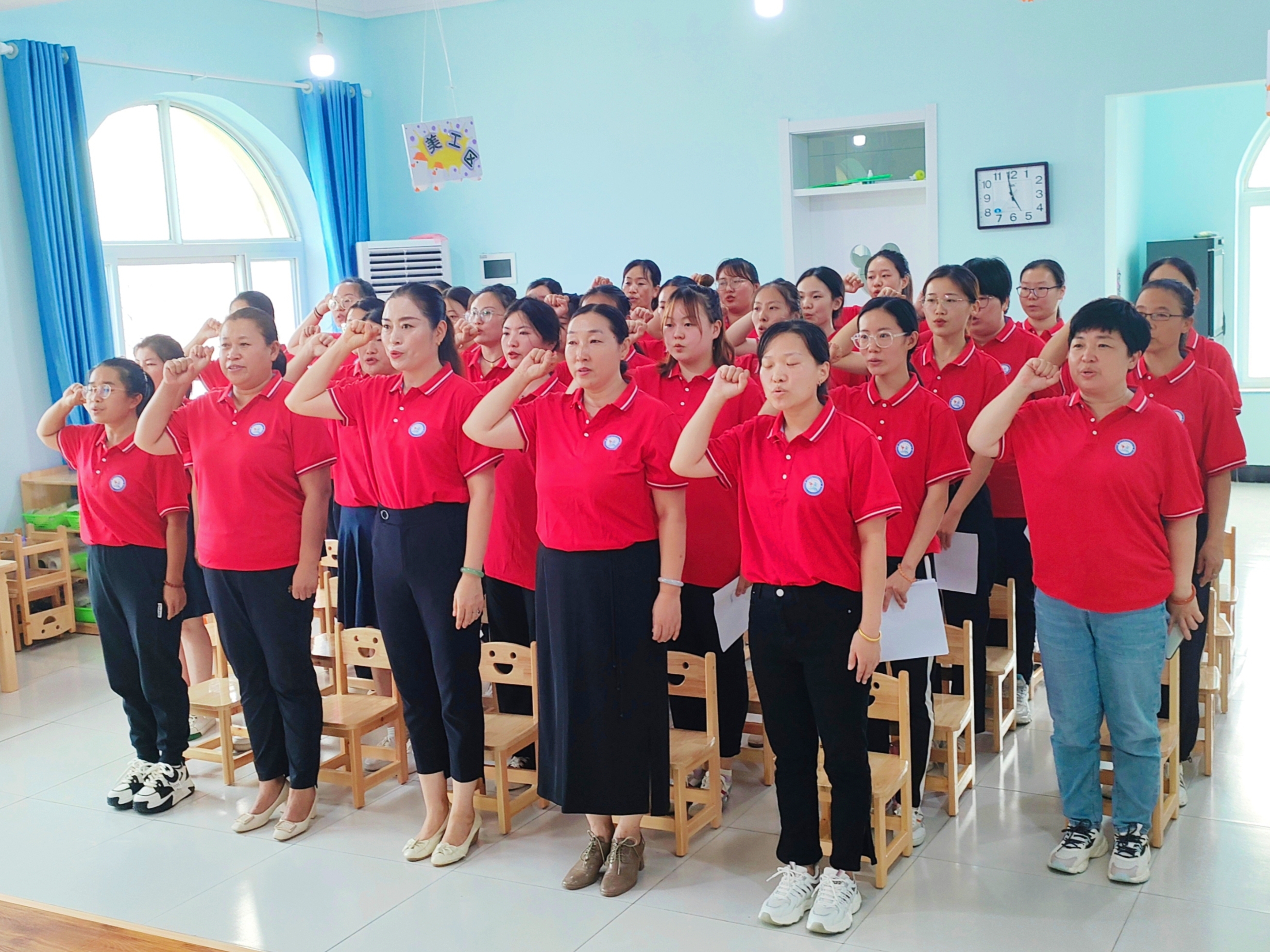 活動中,在園長的帶領下,第四幼兒園全體教師不忘初心,重溫誓詞。“忠誠黨的教育事業,貫徹黨的教育方針。遵守教育法律法規,履行教書育人職責……”鏗鏘的誓言,是每一位教師的自我期許,更是對教育的莊嚴承諾。