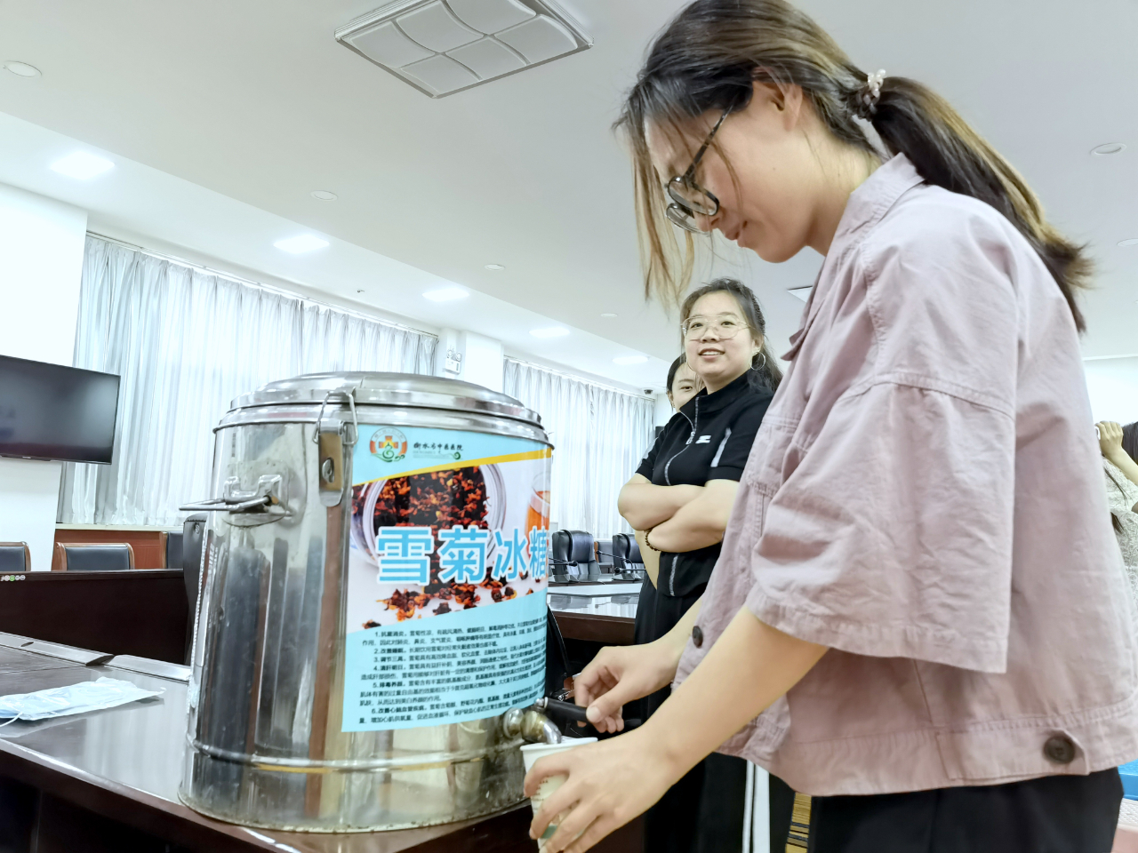 活動現場,醫院肺病科、推拿康復科、脾胃病科、婦科、皮膚科等國家與省市重點中醫專科的專家們,用中醫藥健康關懷為衡水中學教職工送來了“教師節”的美好祝福。推拿康復科主任耿兵將結合教師職業特點,圍繞普遍存在的頸腰椎健康問題,進行了“腰間盤突出的預防與康復”為主題的中醫健康講座。詳細講解了教職工在日常教學和生活中如何防治腰間盤突出,以及中醫藥康復知識。各專科專家在義診中為教職工進行了健康篩查,耐心地回答老師們的健康疑問。并有針對性的給予預防與中醫藥健康管理建議,幫助教師了解自身健康情況,做到疾病“早發現、早預防、早治療”。結合白露節氣特點,醫院還精心熬制了“雪菊冰糖茶飲”,潤肺解秋燥,免費供教職工服用。