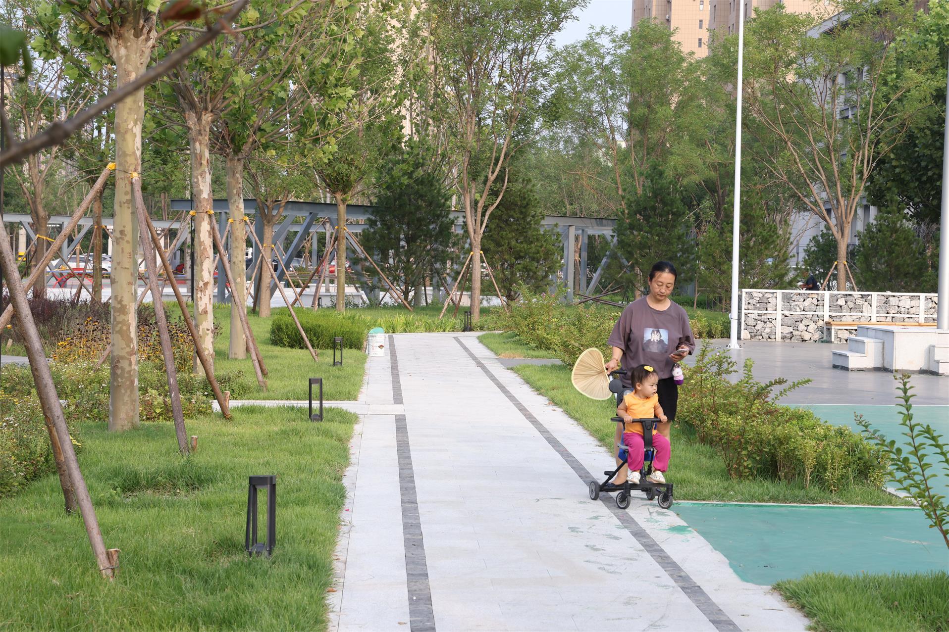 群眾在口袋公園散步。齊紅雨 攝