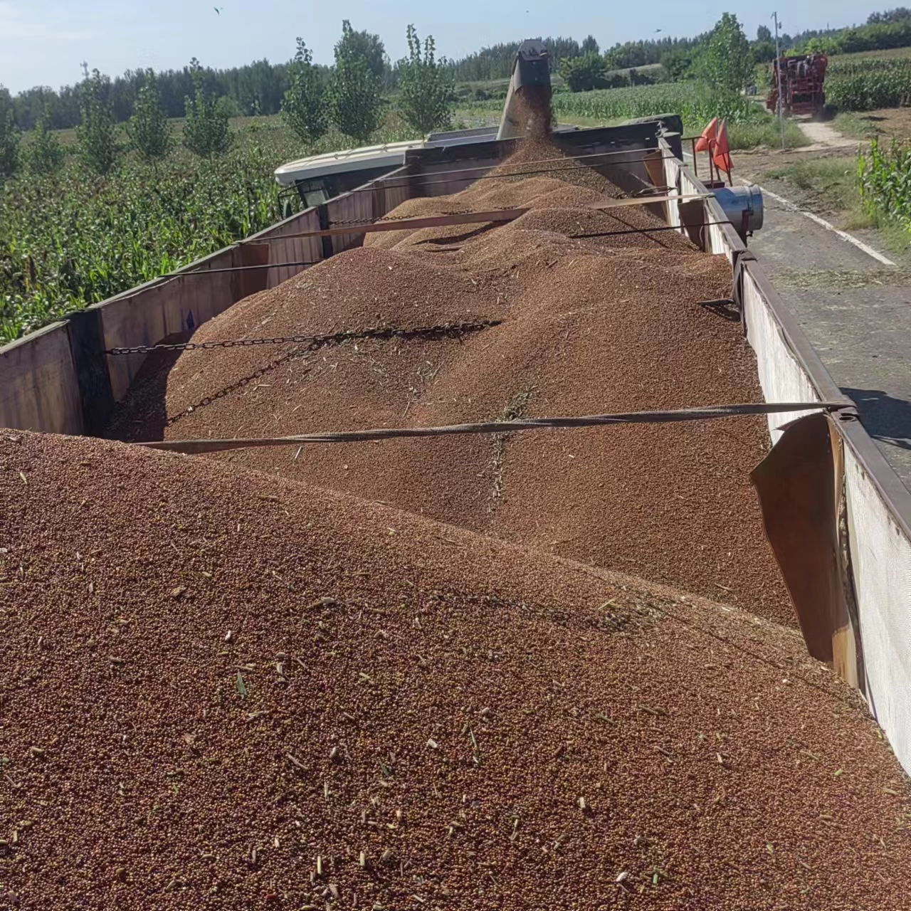春種一粒粟,秋收萬顆子。近日,在衡水市棗強(qiáng)縣嘉會鎮(zhèn)小召村的高粱種植基地里,紅彤彤的高粱俏立枝頭,穗粒飽滿,大型收割機(jī)在田間往來穿梭,摘穗、脫粒、裝車等工序一氣呵成,豐收的畫卷徐徐展開。