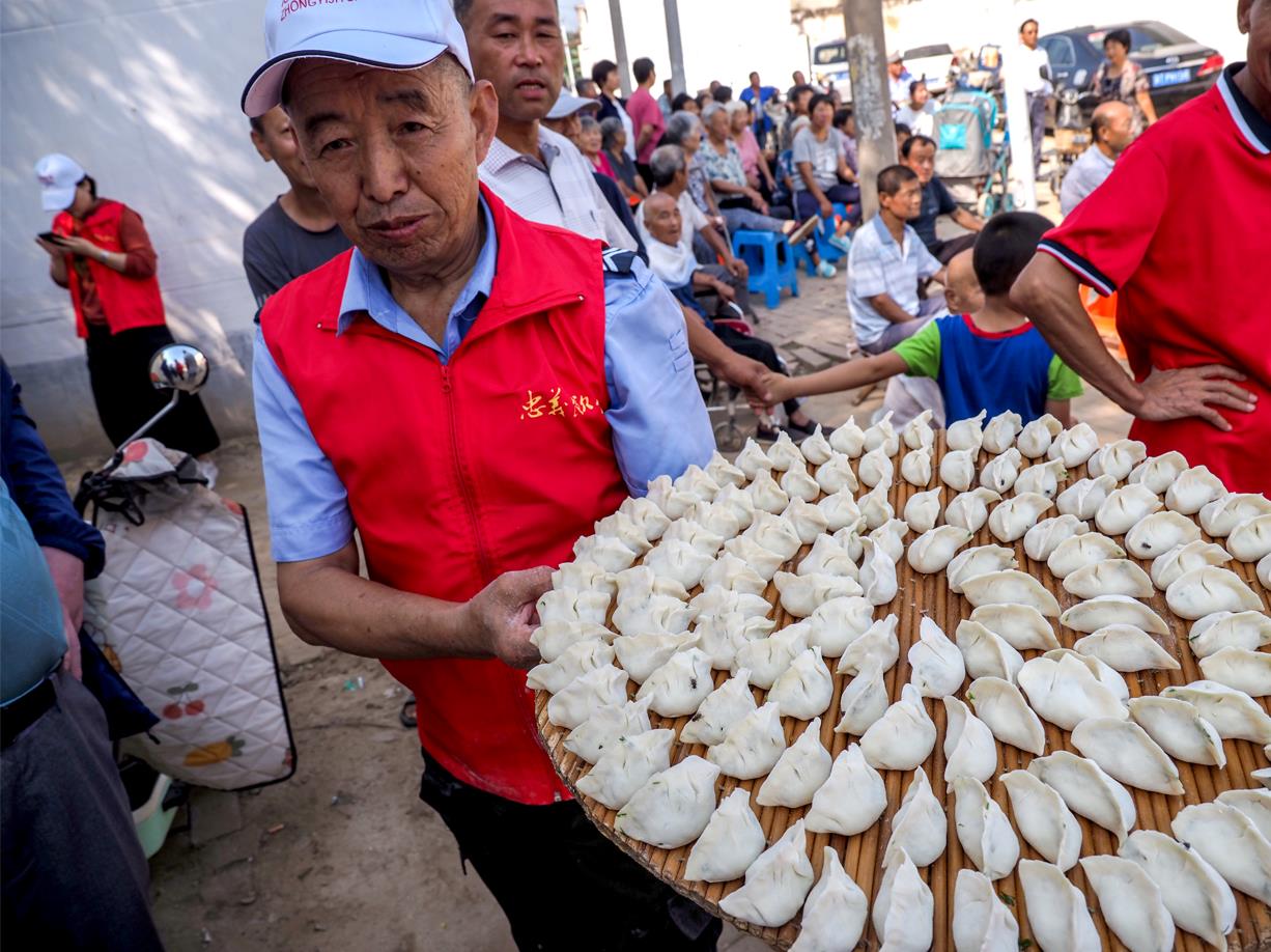 與此同時,來自衡水市第四人民醫院、衡水市復明眼科醫院的醫護人員現場義診。來自衡水市忠義飲食公司的志愿者們為全村60歲以上老人包愛心餃子。中午時分,熱氣騰騰的餃子端上餐桌,130多名老人圍坐在一起,共享餃子宴。