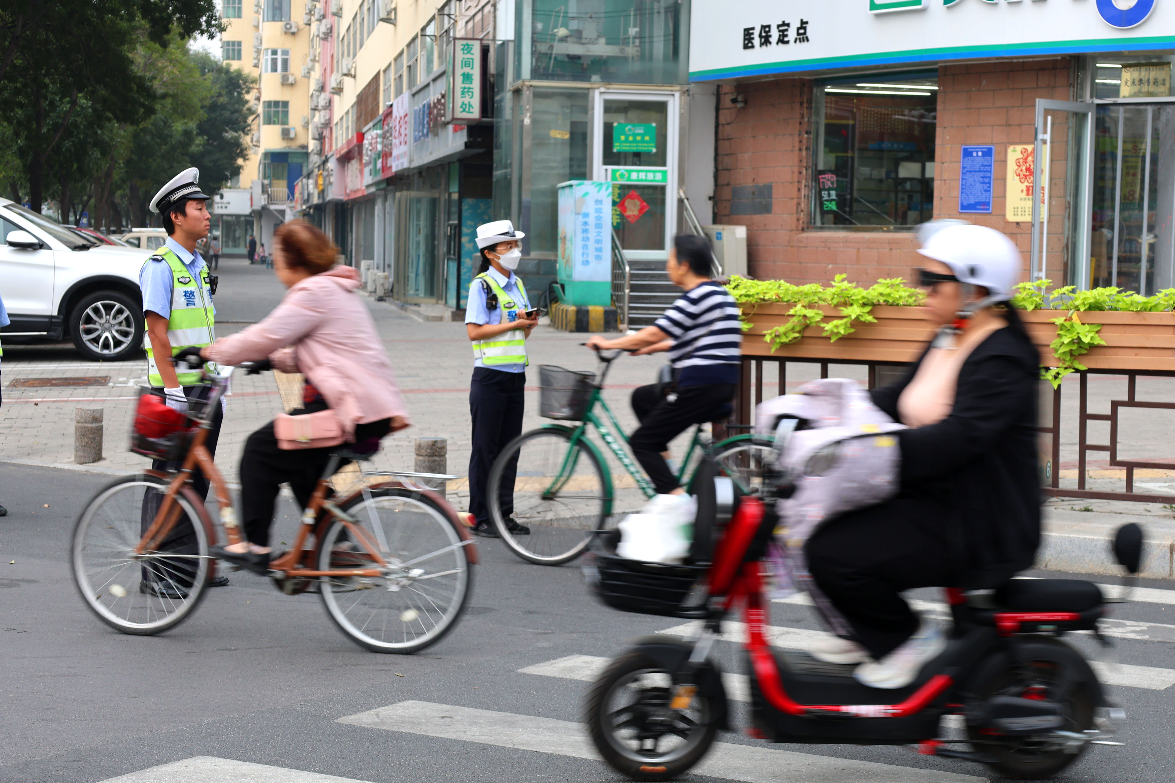 早上7時30分,市區中心街與勝利路交叉口人來車往,因附近有小學,此處人流量及車流量都非常大,其中以騎電動車代步或送孩子上學的市民居多。負責該路口執勤任務的中心街勝利路崗交警們在路口四個方向設置執勤點,重點對電動自行車駕駛人不佩戴安全頭盔、逆行等交通違法行為進行現場查糾。