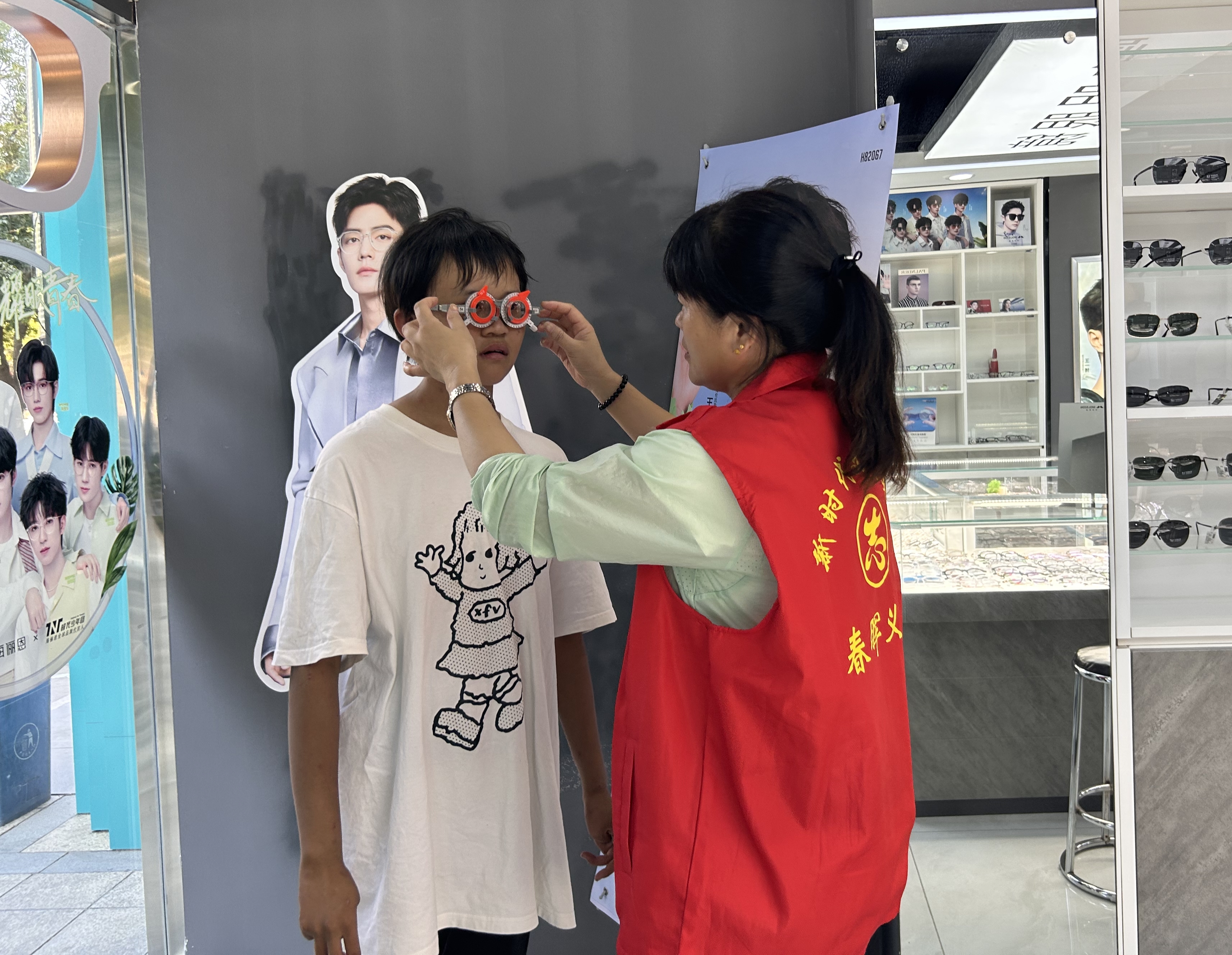 趙書林今年48歲,妻子無生活勞動能力,兩個女兒智力略低,一家人主要靠低保金和種地為生。“今年家庭收入怎么樣?”活動中,志愿者詳細了解趙書林的生活情況。得知趙書林大女兒從小視力不好,志愿者們幫孩子換上新衣服后,帶她一起去配眼鏡。來到免費提供愛心眼鏡的眼鏡店內,孩子挑選了自己滿意的鏡架,戴上配好的眼鏡,臉上露出開心的笑容。