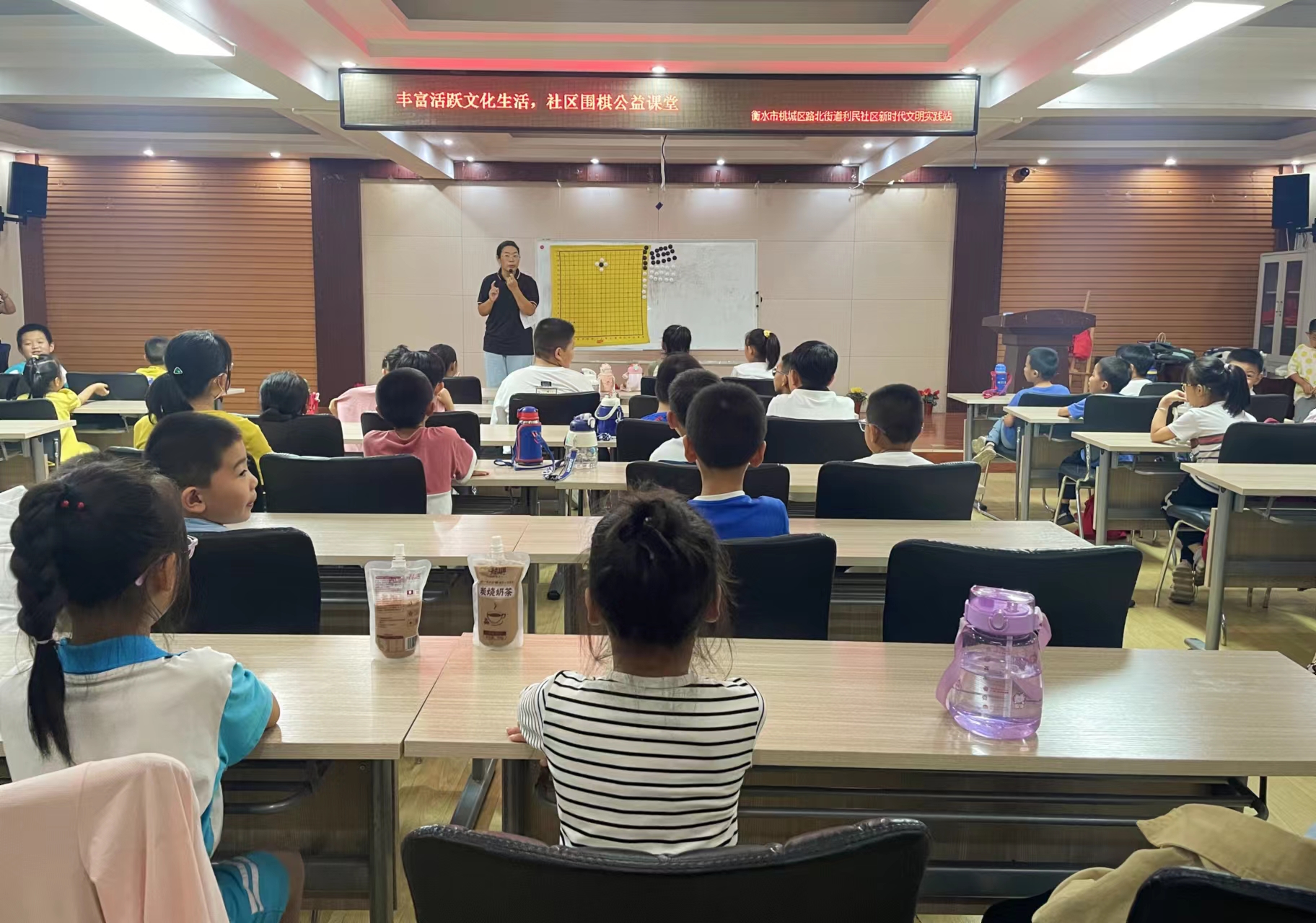 此外,利民社區邀請衡水棋院專業圍棋教師,在社區開展以“棋樂融融迎國慶”為主題的圍棋文化進社區活動。現場,老師先用典故引出圍棋的歷史,再講解“點頭示意”“觀棋不語”等下圍棋的基本禮儀。隨后,老師通過講解吃子手段、對殺方法等圍棋基礎知識,由淺入深地培養孩子們對圍棋的學習興趣。
