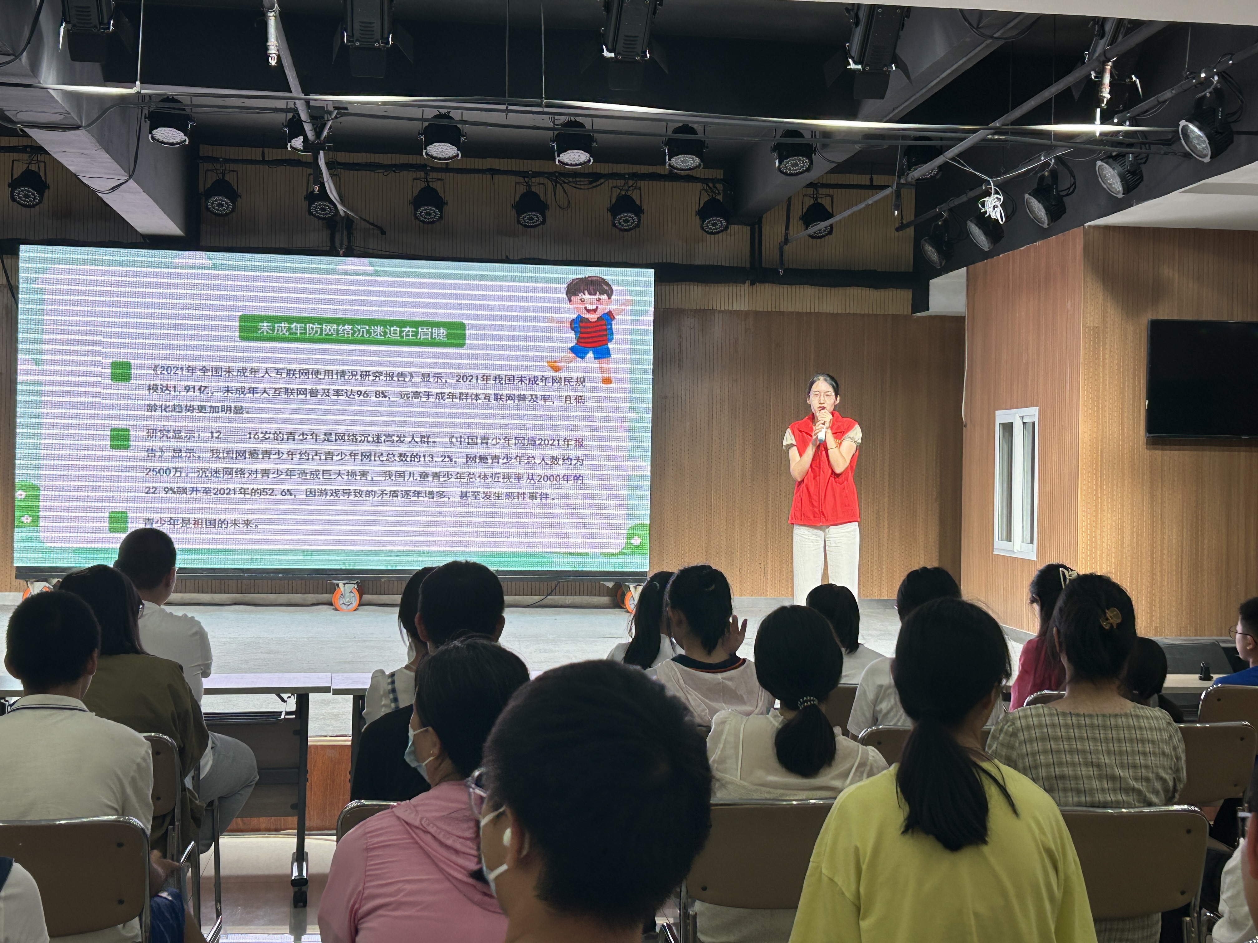 講座現場,志愿者結合身邊案例,圍繞網絡沉迷、網絡詐騙、文明上網、安全上網等內容進行講解和宣傳。通過生動有趣的視頻、小品,為同學們普及網絡安全知識及健康文明上網知識,提升學生們網絡安全意識和網絡文明素養,有效防范網絡侵害事件的發生。