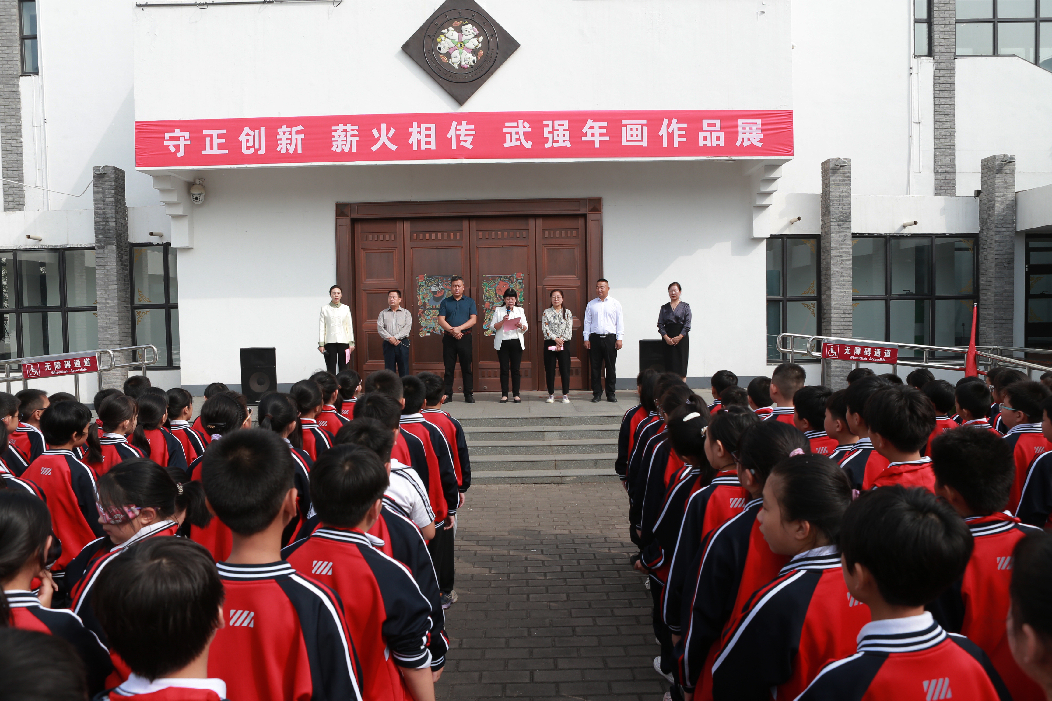 此次展覽在武強年畫博物館舉辦,共展出2020年以來武強年畫畫家及北京市第六十五中學學生所創(chuàng)作的武強年畫新作100余幅,主題涉及法治平安、建功新時代等,題材豐富,風格多樣,格調清新,異彩紛呈,體現(xiàn)了武強年畫與時俱進、守正創(chuàng)新的嶄新風貌,以及武強年畫進校園、在北京市第六十五中學培根鑄魂、薪火相傳的豐碩成果。