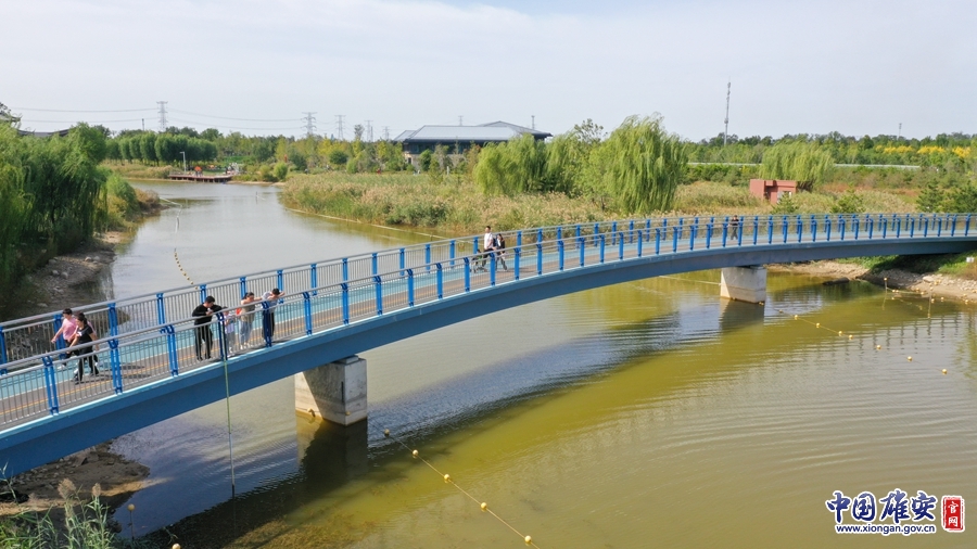 游客在園內橋上駐足觀景。中國雄安官網毛鶴然 攝