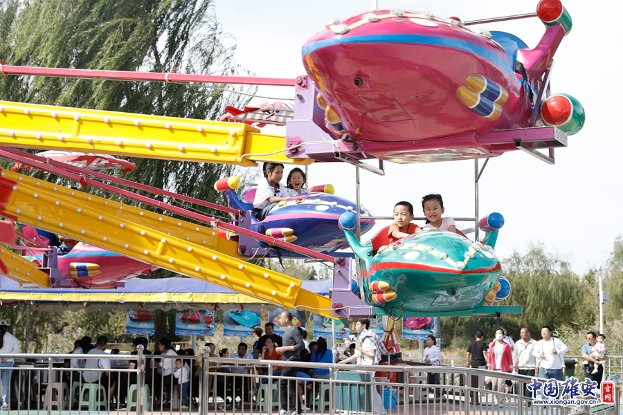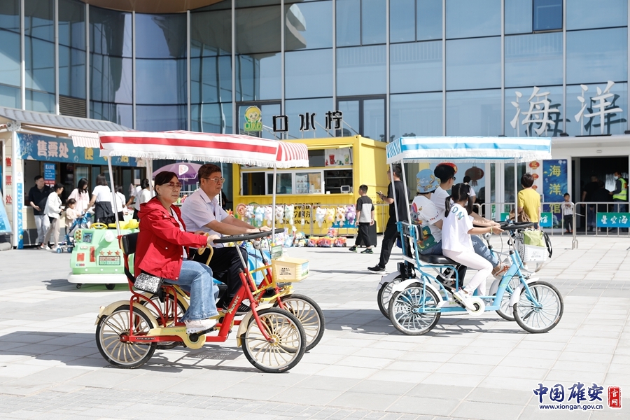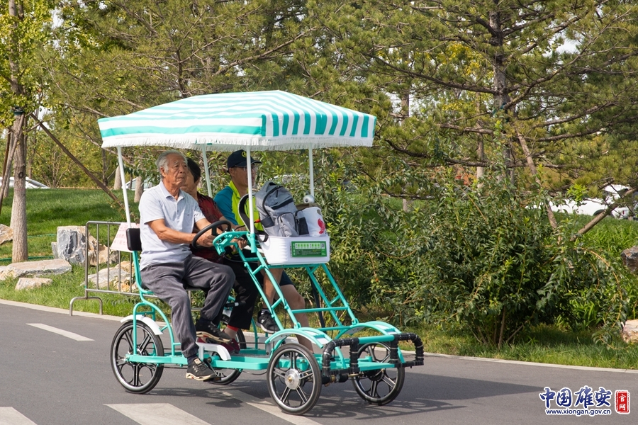 游客乘坐觀光自行車在園內游玩。中國雄安官網毛鶴然 攝