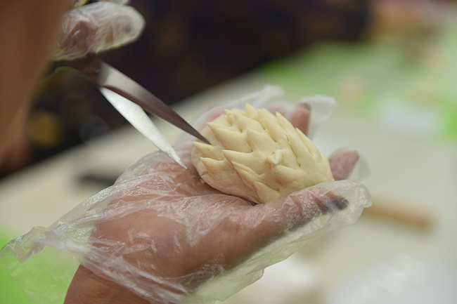 社區居民在面點師指導下學習制作面點。高雷 攝