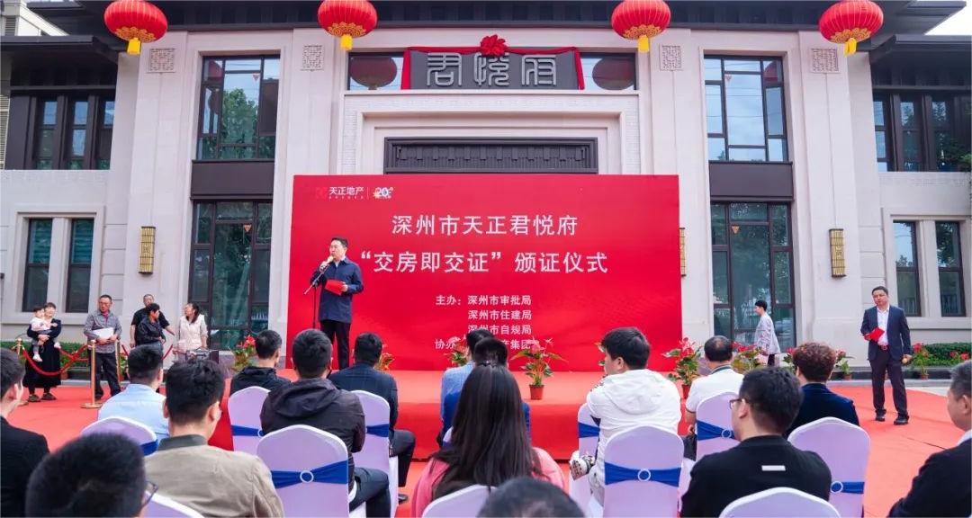 日前,衡水深州市2023 年首批“交房即交證”活動儀式在衡水天正·君悅府(深州)項目圓滿舉行。