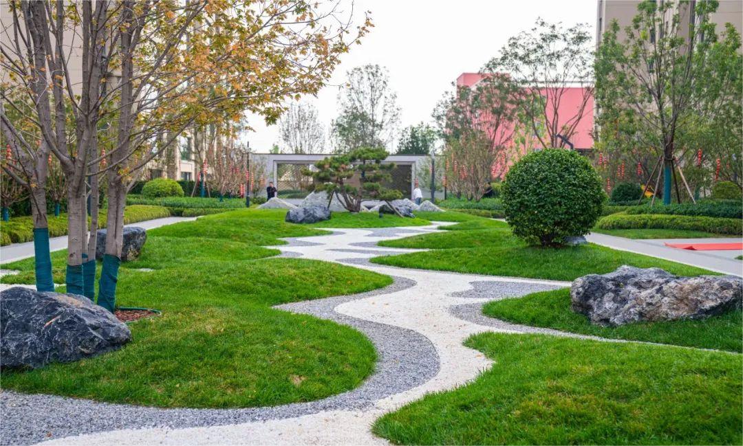 進入社區,第一眼便被極具辨識度的外立面所吸引,簡潔干凈、線條清晰,美感十足。合理的樓間距設計既充分保證業主生活隱私,又照顧到了每一棟樓的采光。在實景已呈的園林之中,草坪、灌木、喬木、花卉等多重元素,形成非常舒適的景觀空間。園區規劃全齡活動場地、景觀會客廳、陽光草坪等設計,形成趣味性的鄰里休閑空間,讓美好綻放在生活的每個角落。