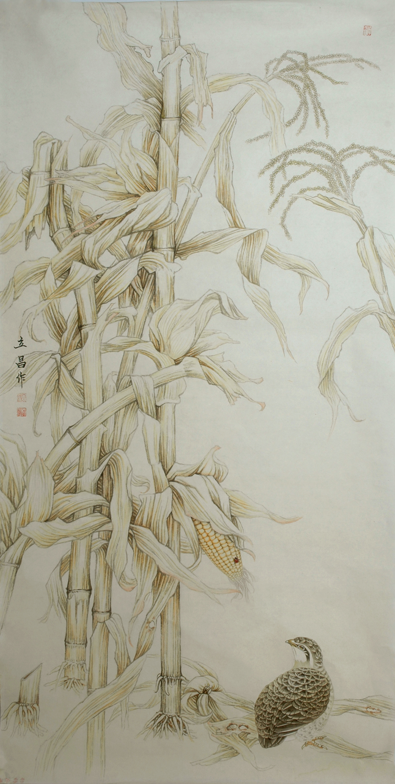 國畫《中天遼闊秋無際》 楊糧稱 作