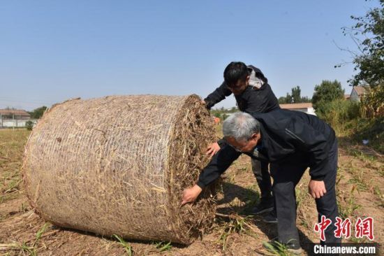 10月16日,河北衡水景縣農技人員實地查看秸稈打捆回收情況。高雷 攝