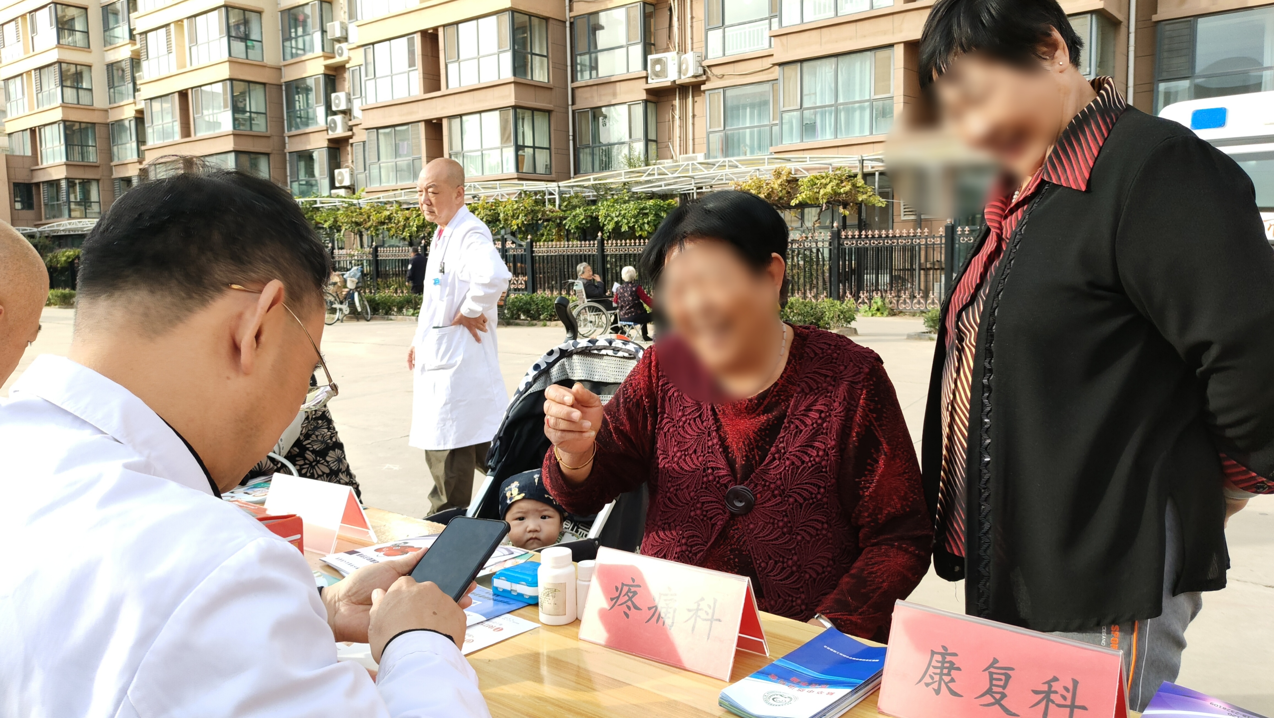 2023年10月19日下午,衡水市第五人民醫院值“中國鎮痛周”之際,組織疼痛科、康復醫學科、骨科等與“疼痛”相關的五個科室,來到廣廈社區某小區開展義診活動。